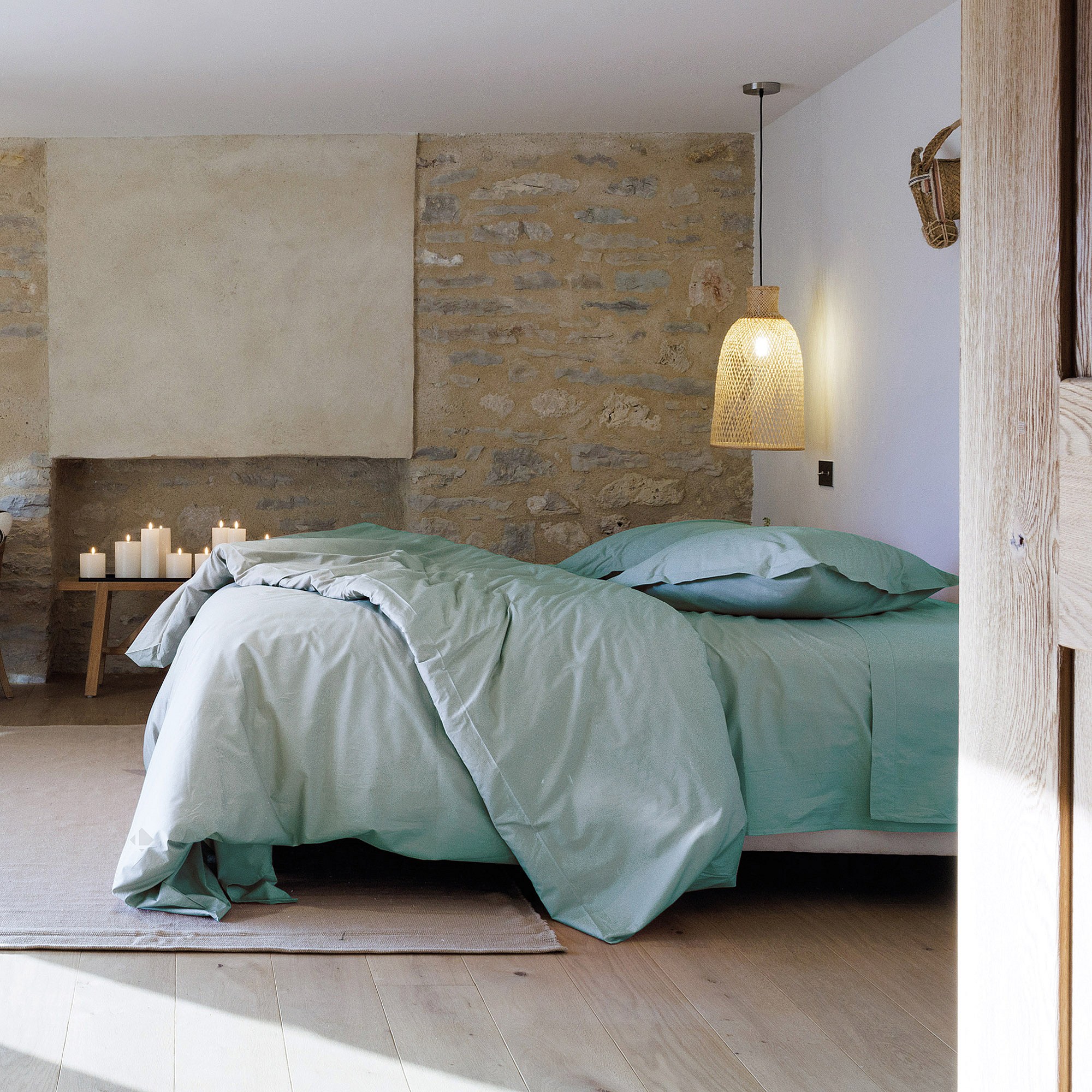 Housse de couette uni 240x220 cm percale de coton MANOIR vert Lichen
