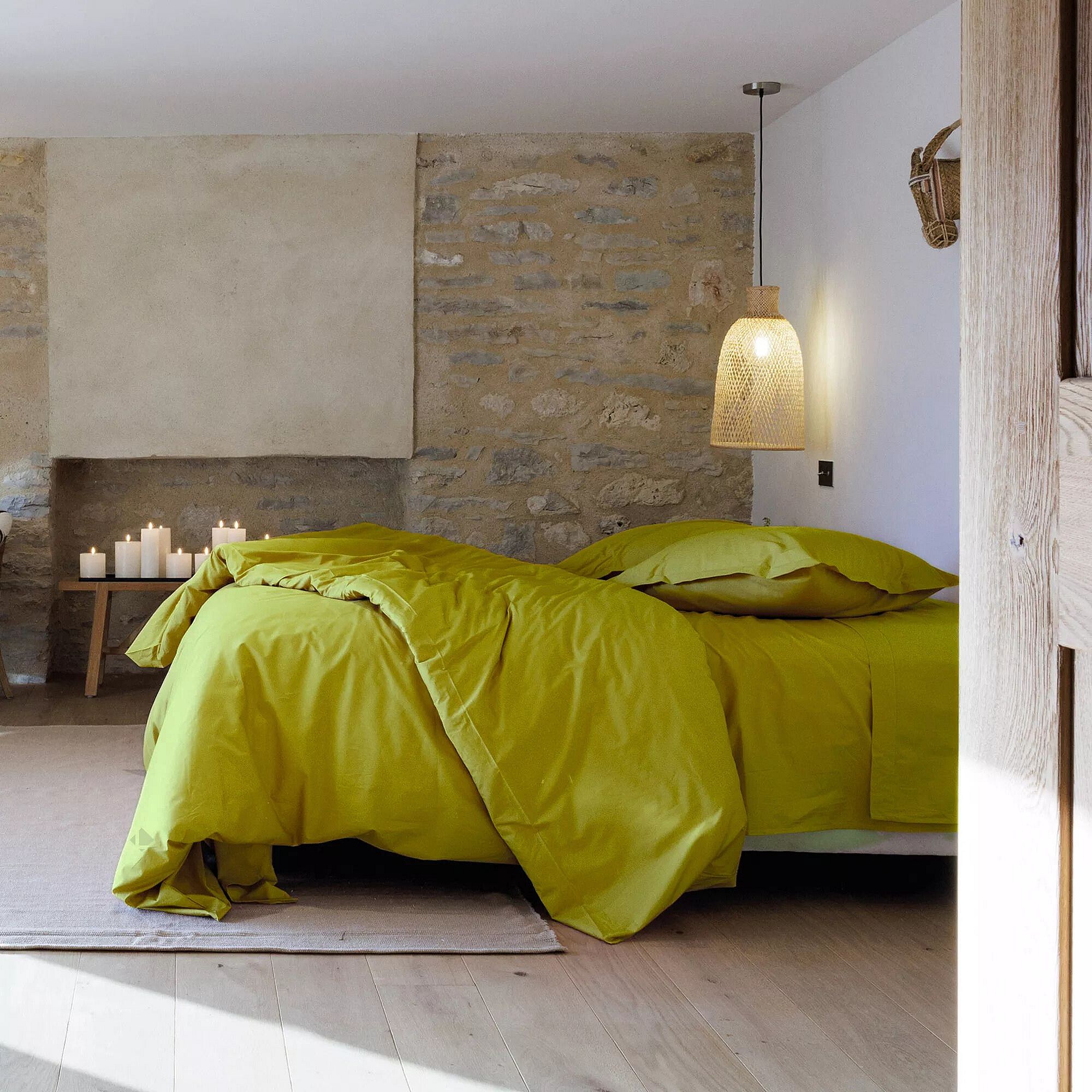 Housse de couette uni 260x240 cm percale de coton MANOIR vert Jasmin