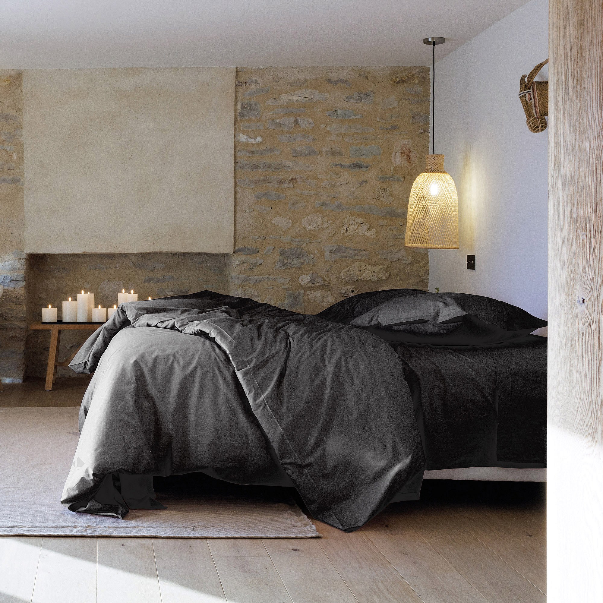 Housse de couette uni 280x240 cm percale de coton MANOIR gris Ardoise