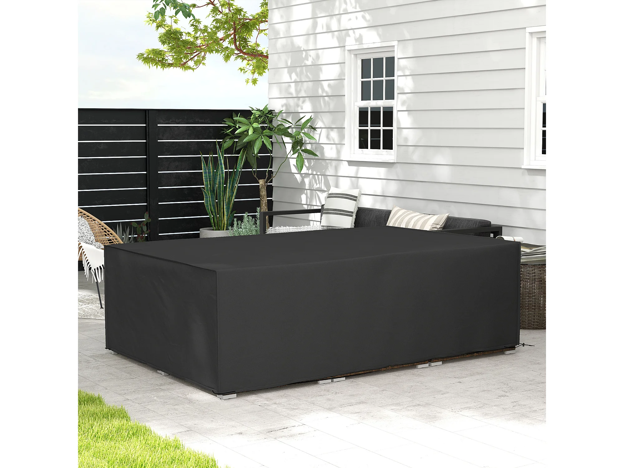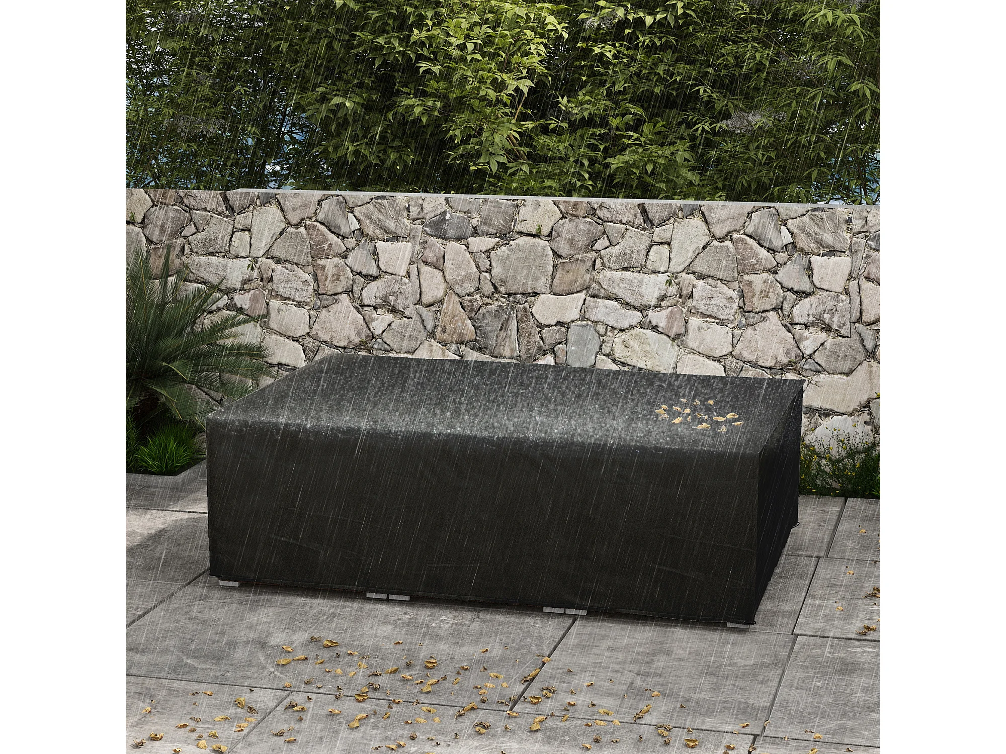 Housse de protection salon de jardin bâche etanche tissu oxford rectangulaire 222L x 155l x 67H cm noir
