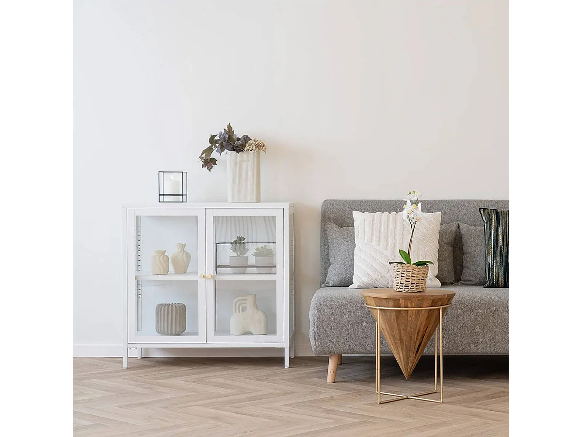HUGO - Meuble d'appoint 2 Portes Vitrées en Métal Laqué Blanc