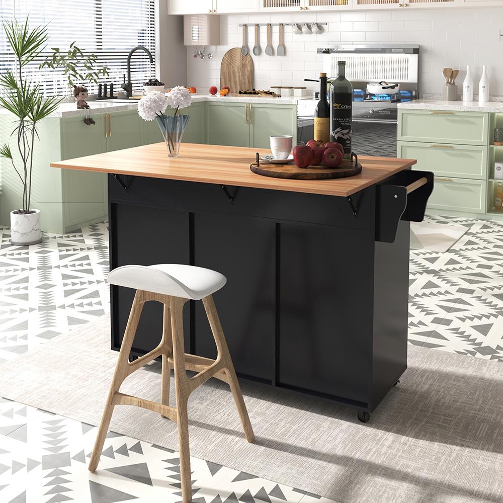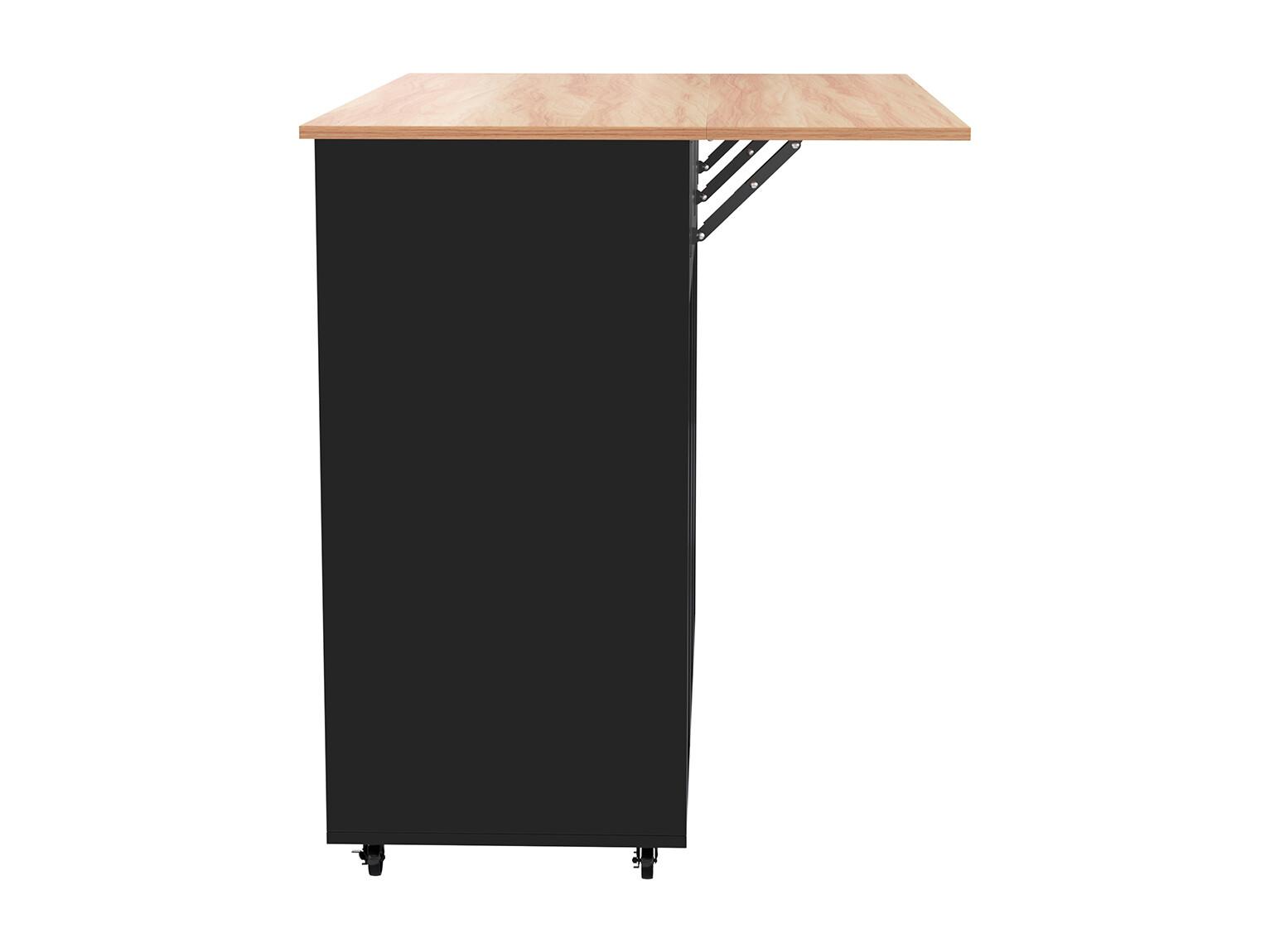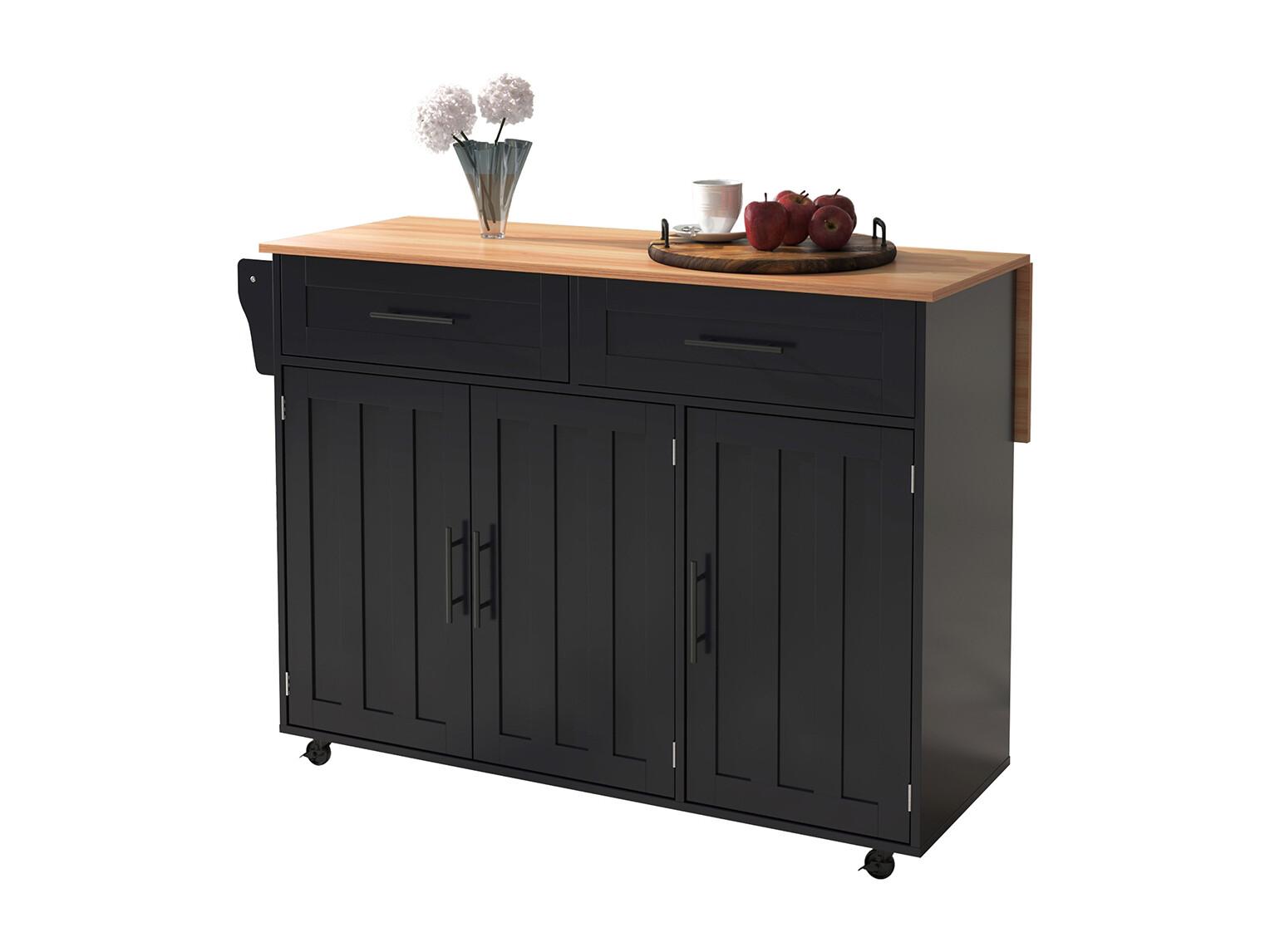 Îlot central chariot plateau rabattable étagères portes armoire îlot 5 roulettes rangement 2 tiroirs salle à manger noir