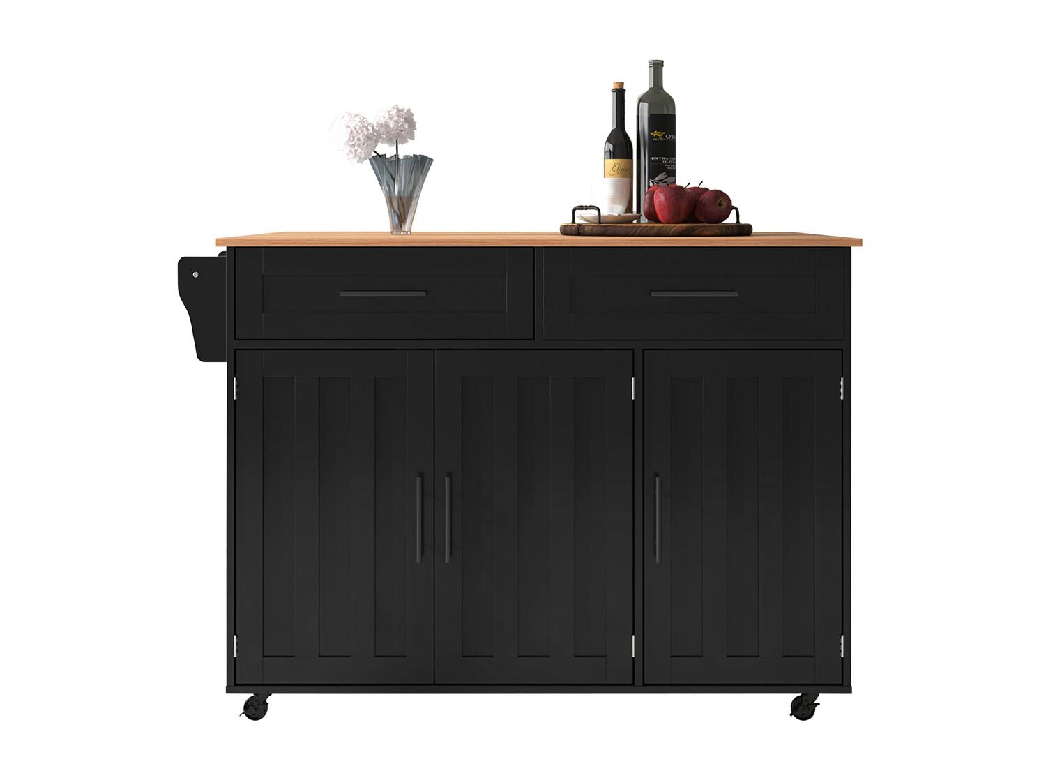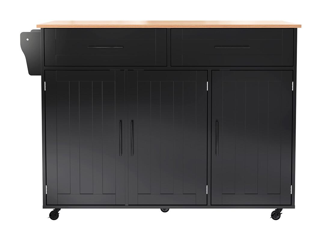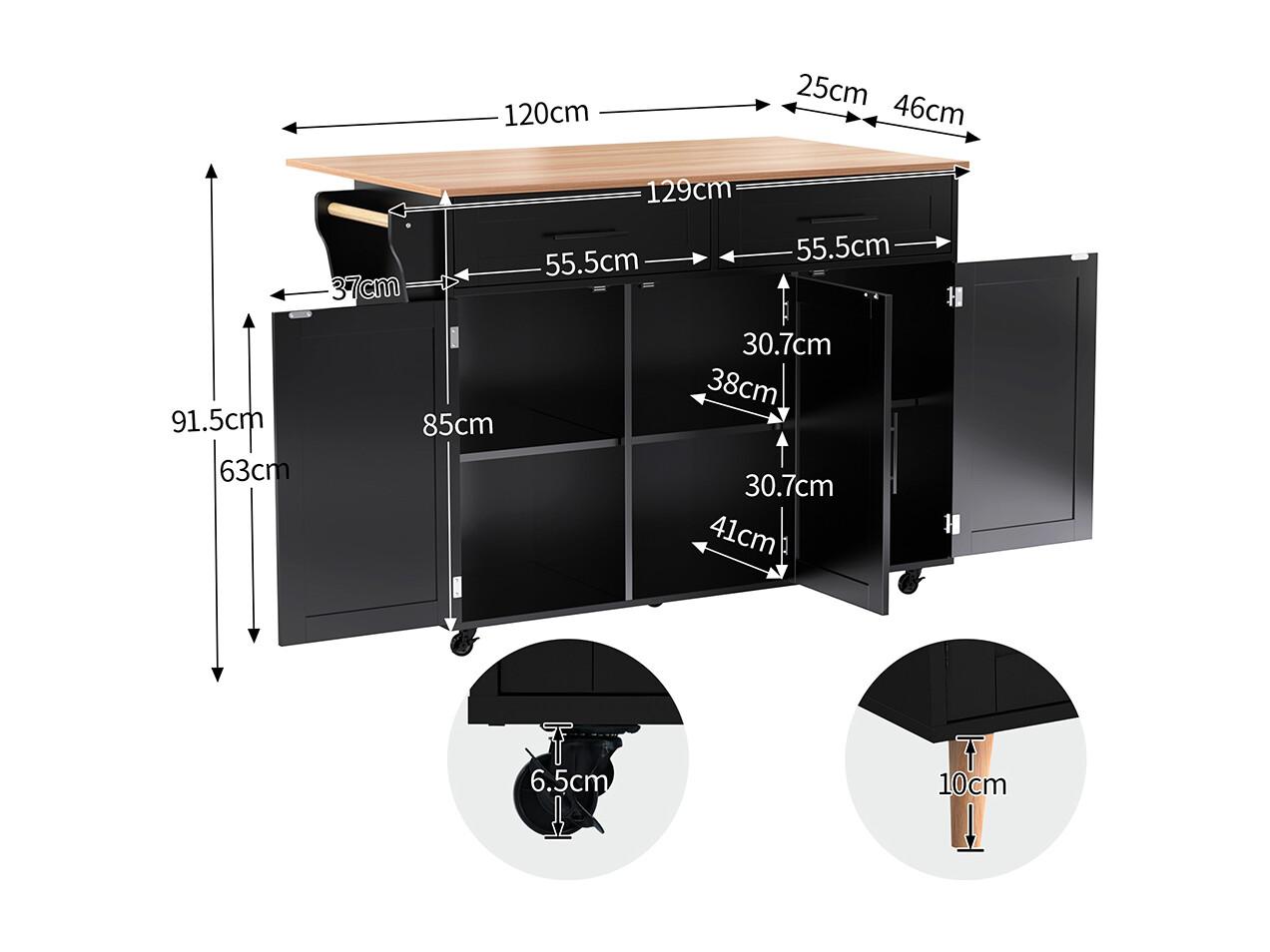 Îlot central chariot plateau rabattable étagères portes armoire îlot 5 roulettes rangement 2 tiroirs salle à manger noir