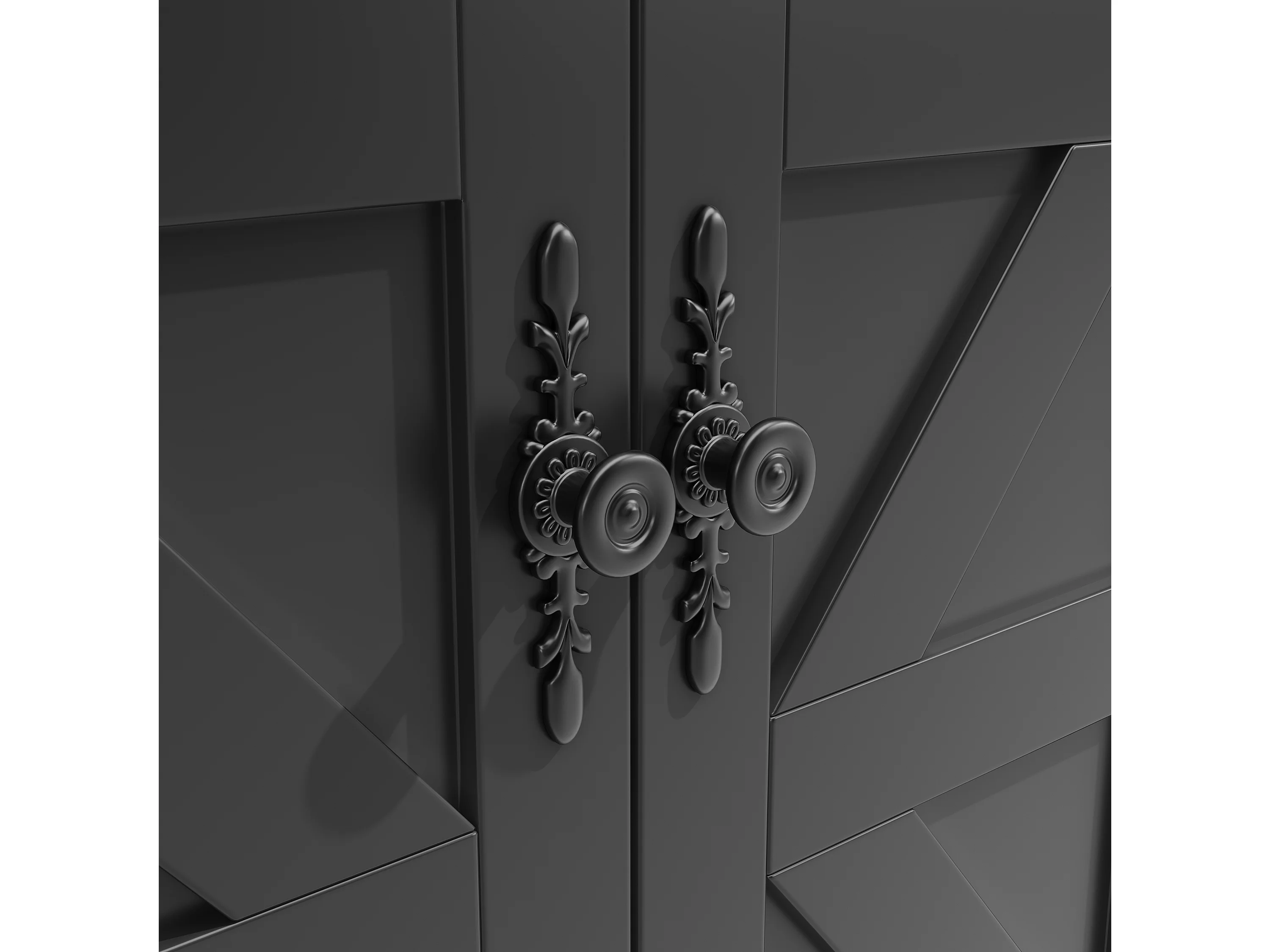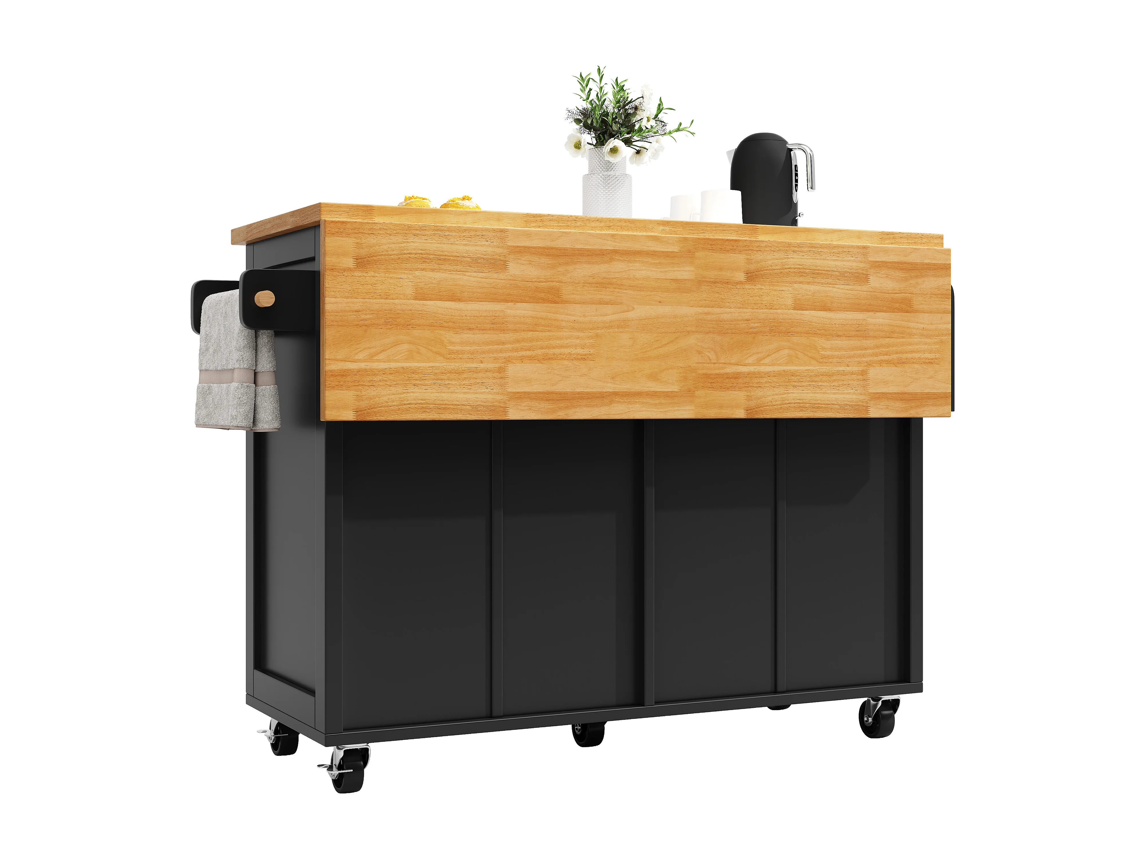 Îlot de cuisine noir - Desserte de cuisine avec 2 tiroirs et 4 portes - étagère à épices et porte-serviettes