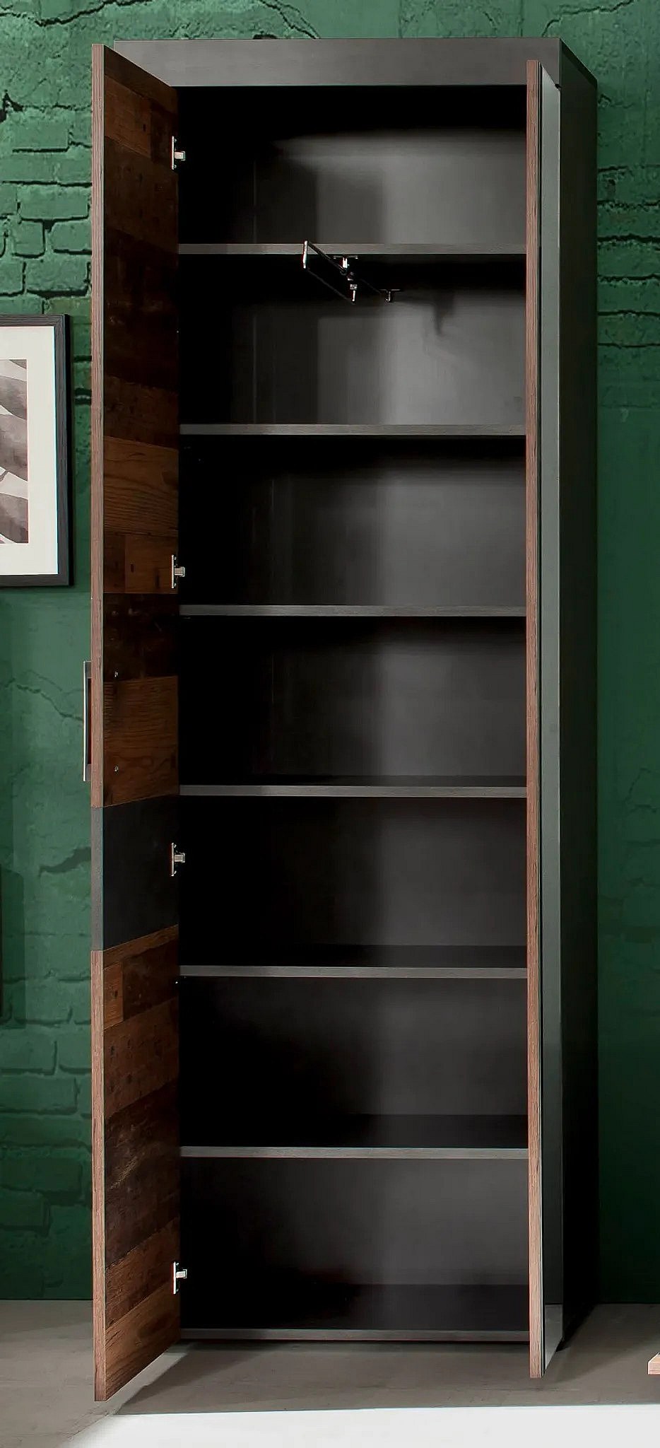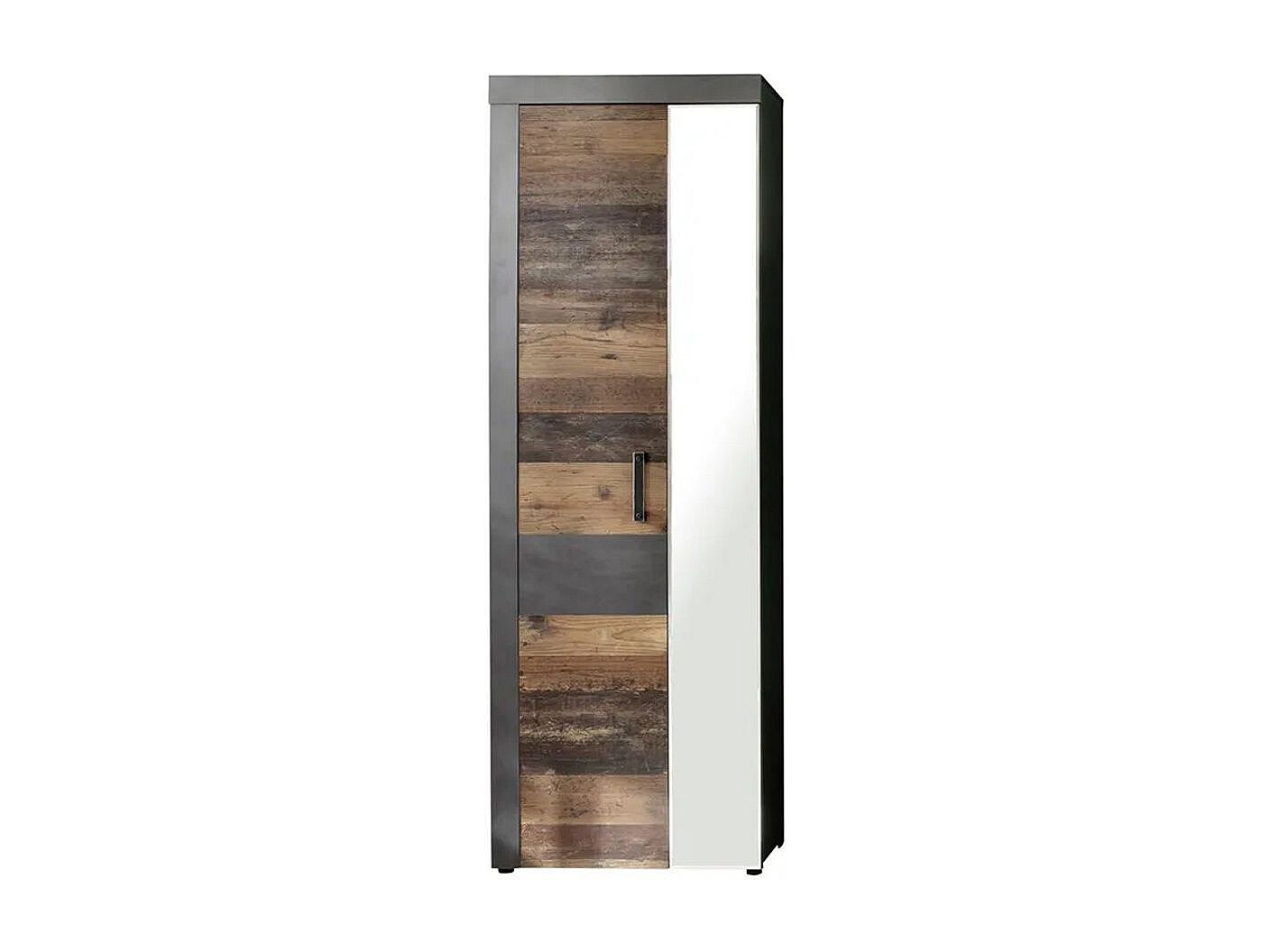 Armoire 1 porte mélaminé chêne foncé et gris avec miroir Orcel