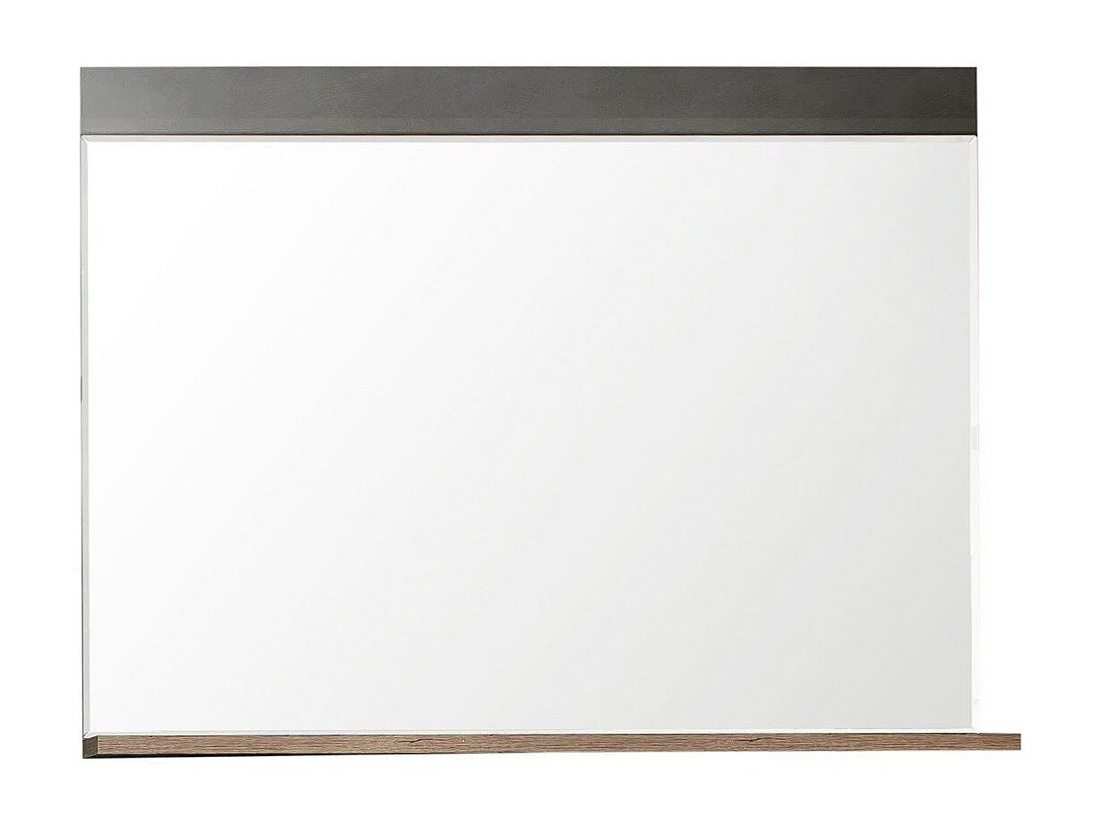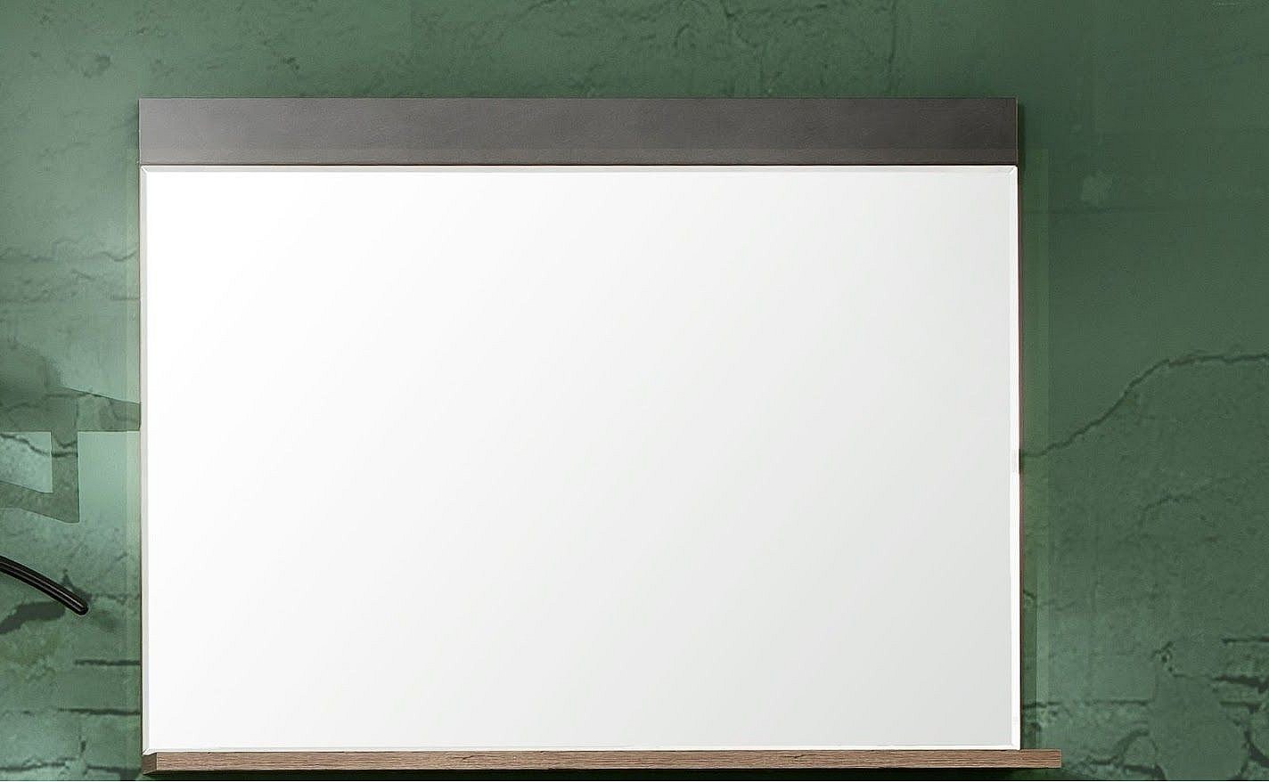 Miroir mural avec étagère mélaminé chêne foncé et gris Orcel