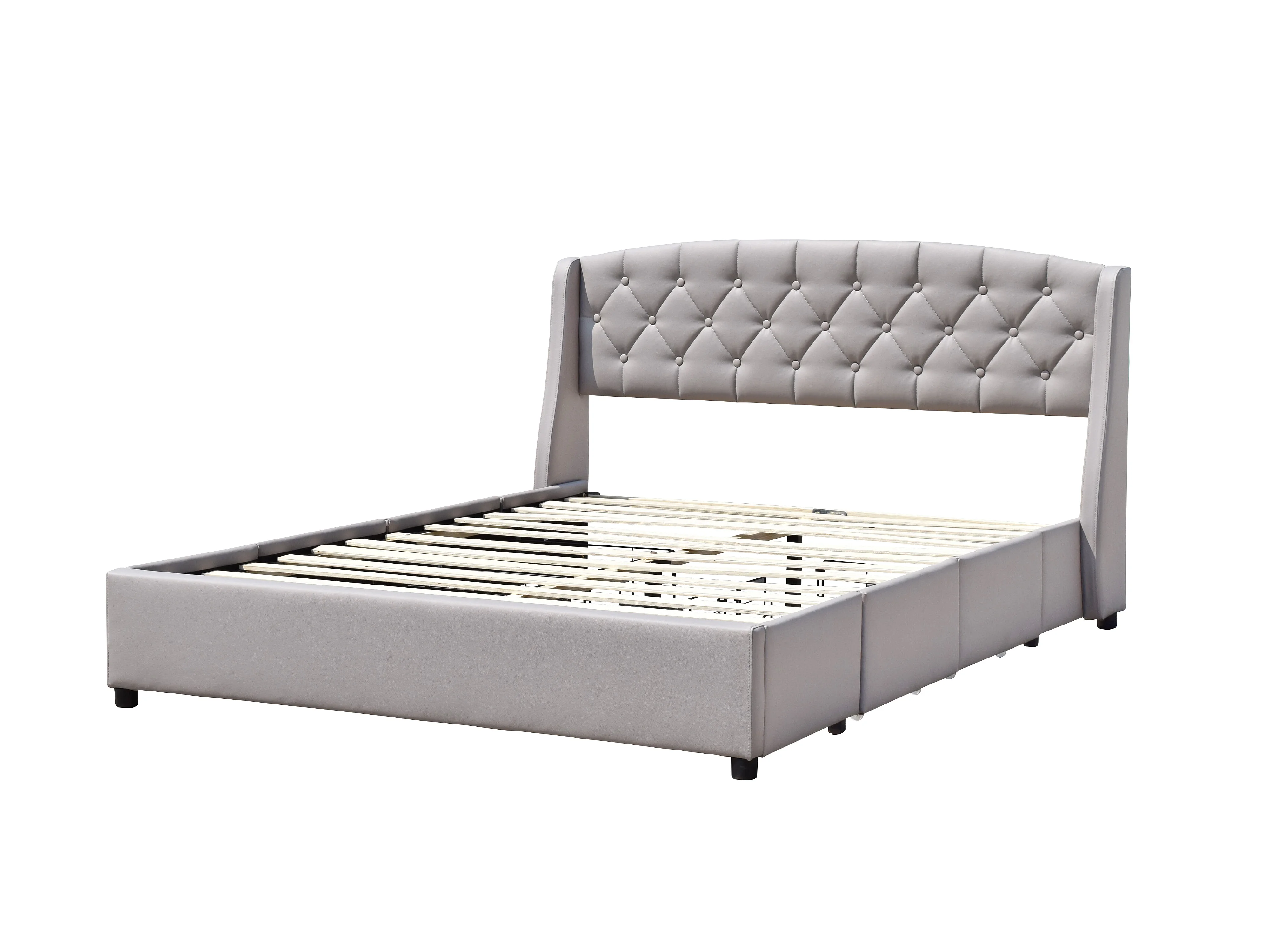 iris - Solide et Confortable Lit 140x200 avec Sommier avec 4 tiroirs + Tete de lit Couleur GRIS + Pieds en 4 cm - 13 Lat