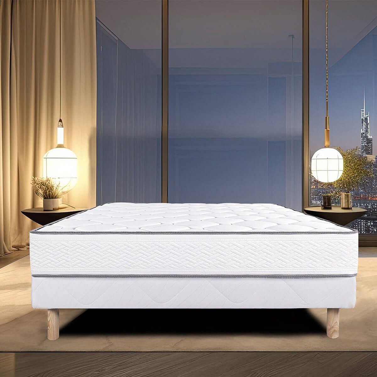 IZAC - Ensemble Matelas Mousse Ep.20cm + Sommier Tapissier Blanc 140x190 cm