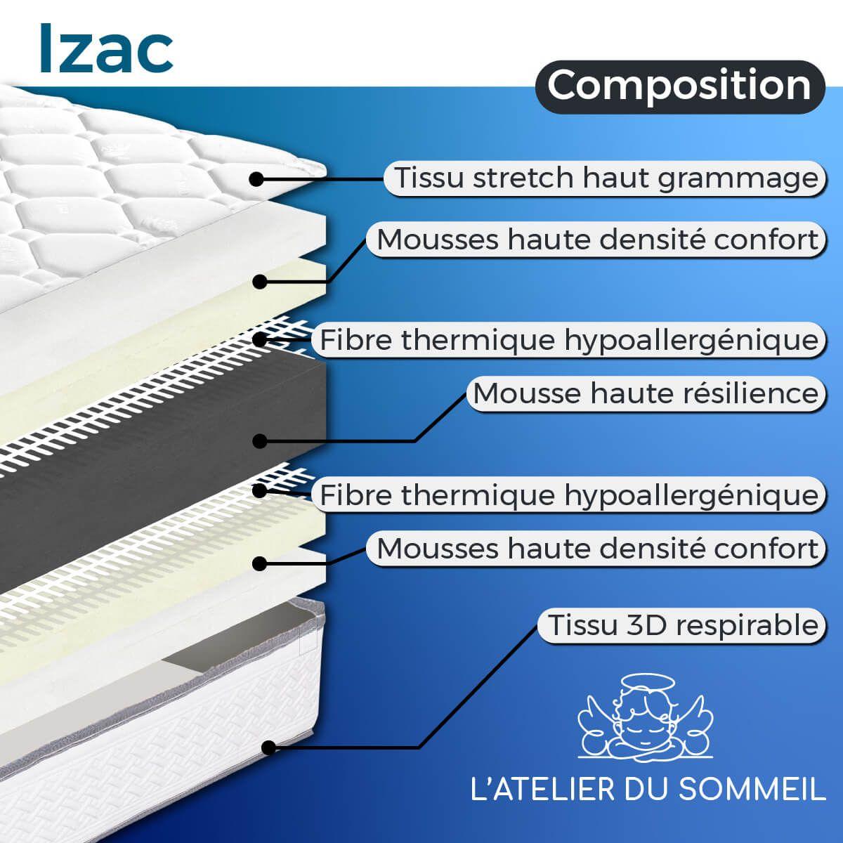 IZAC - Matelas 140x190 cm Mousse haute résilience Soutien ferme Ep.20cm