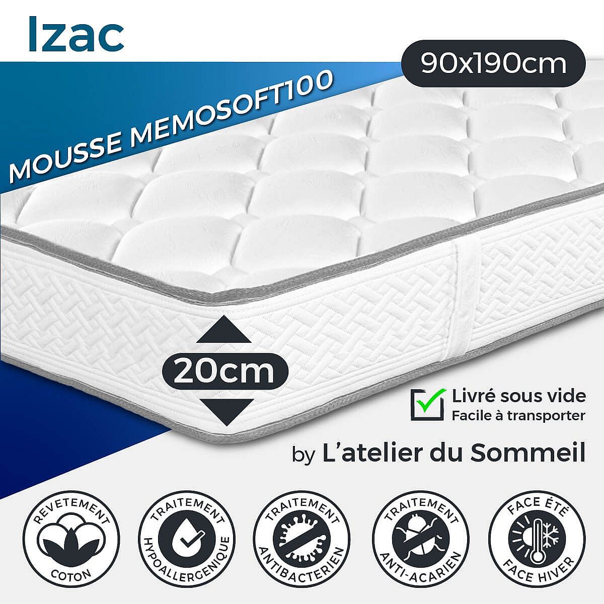 IZAC - Matelas 90x190 cm Mousse haute résilience Soutien ferme Ep.20cm