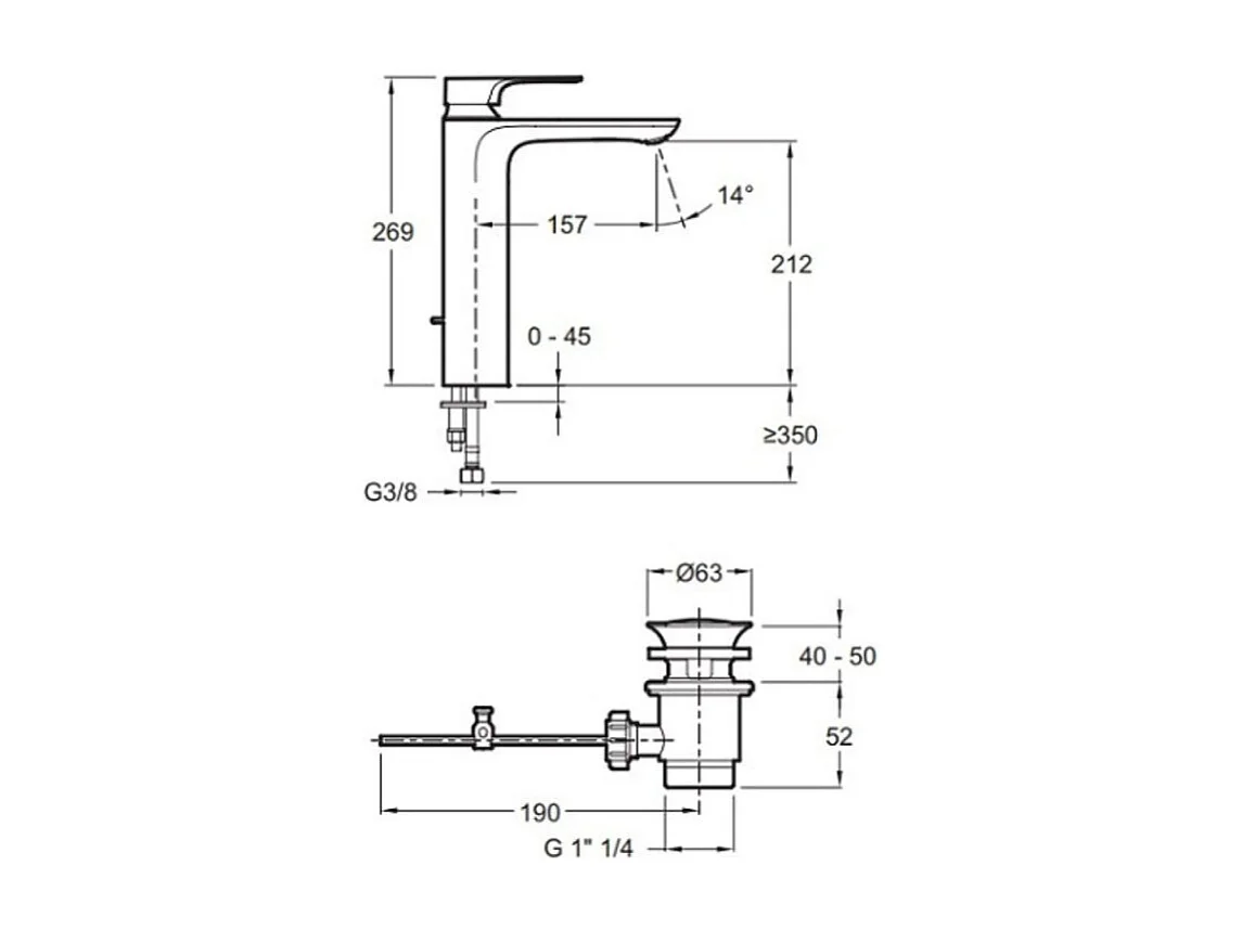 Mitigeur lavabo haut JACOB DELAFON Aleo+ avec vidage