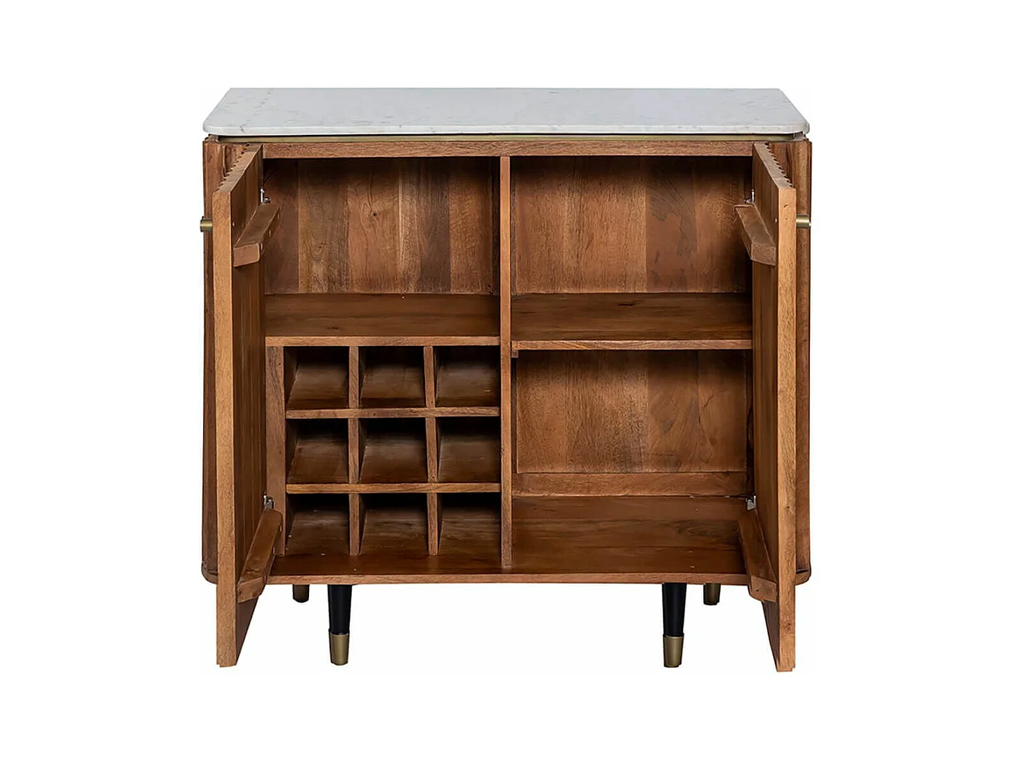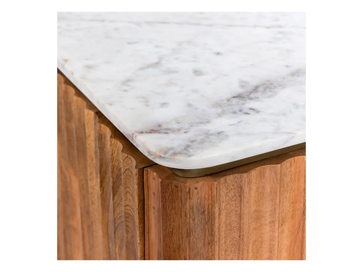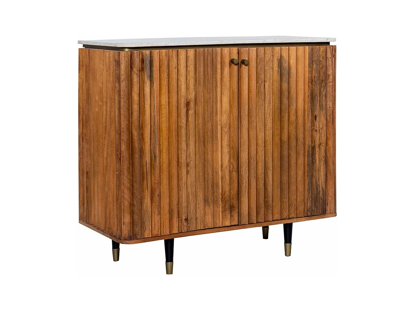 JAMARIS - Meuble de Rangement 2 Portes en Manguier Plateau Marbre Pieds Teinté Embout Doré