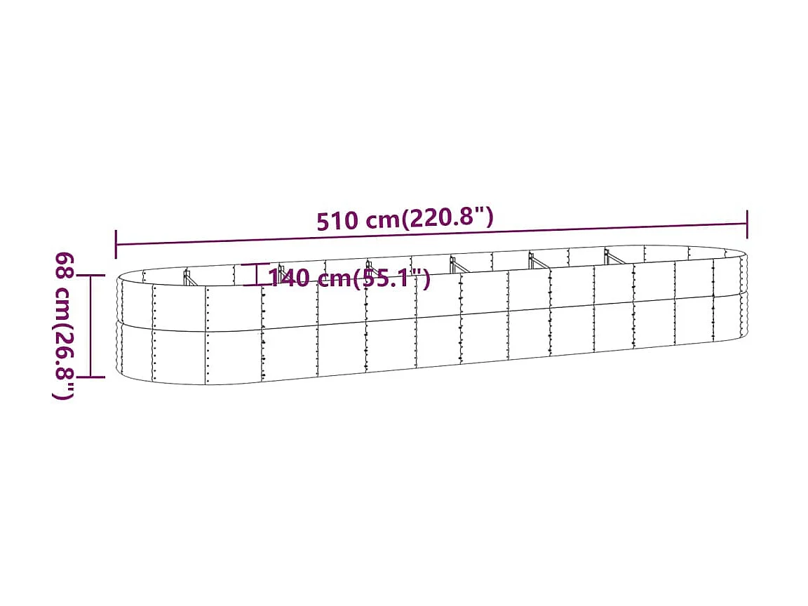 Jardinière Acier enduit de poudre 510x140x68 Argenté