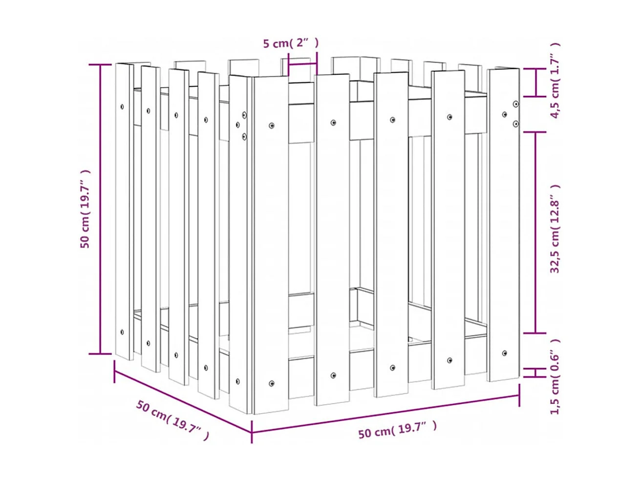 Jardinière avec design de clôture blanc 50x50x50 pin massif