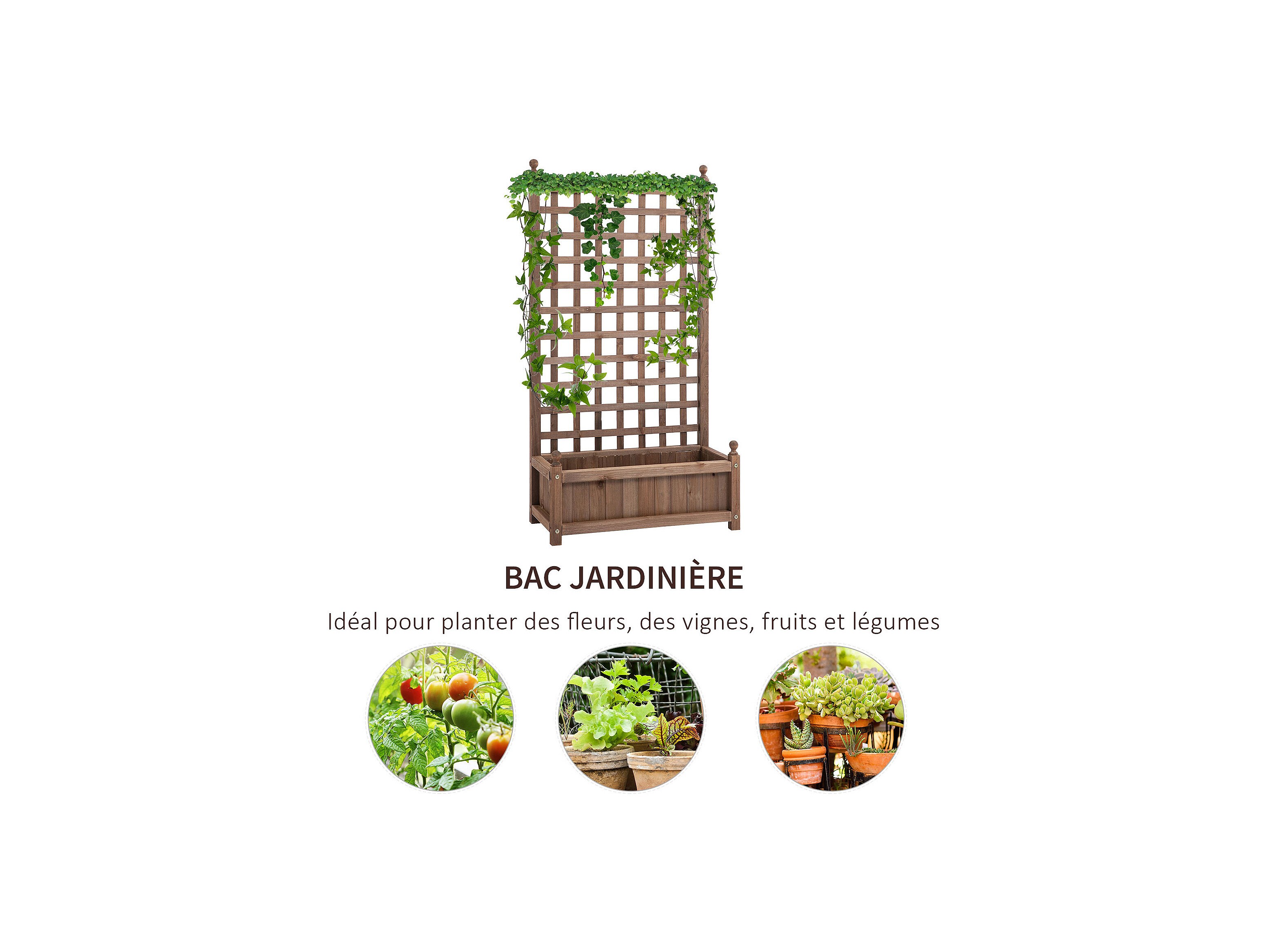 Jardinière avec treillis marron bois massif de sapin FR58210