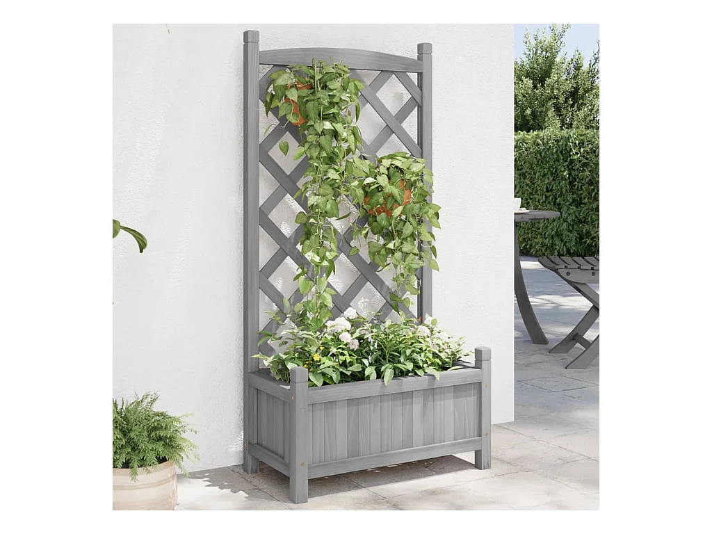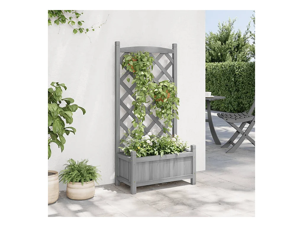 Jardinière avec treillis gris bois massif de sapin FR48589