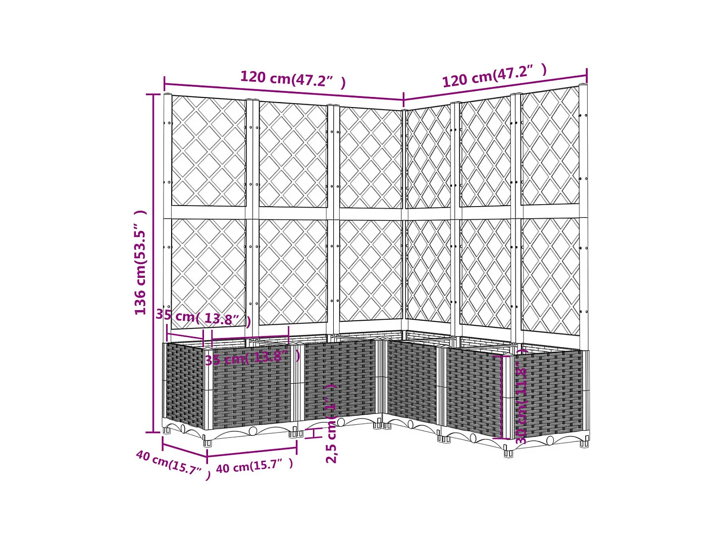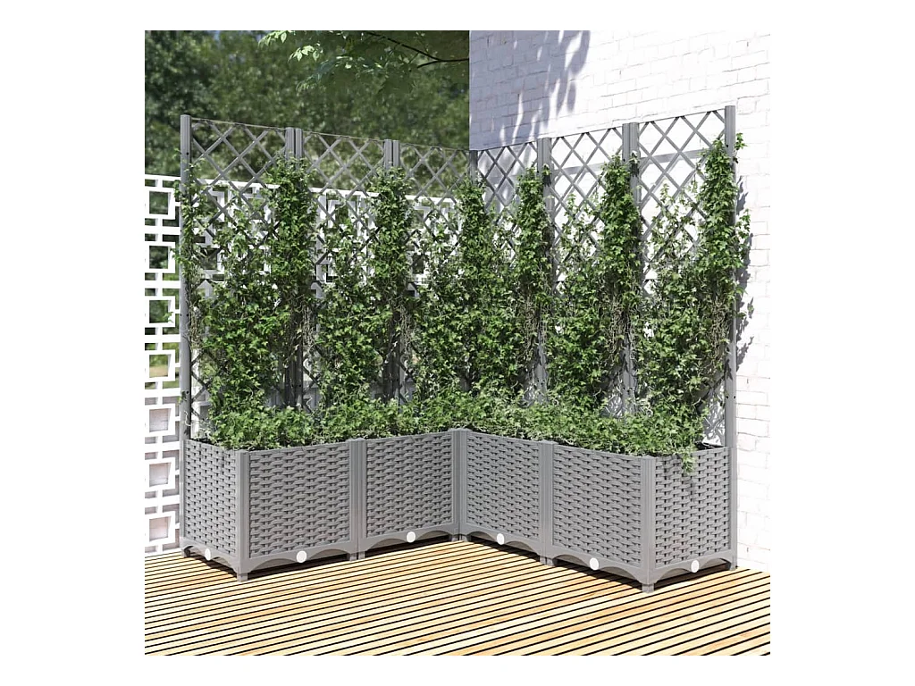 Jardinière avec treillis gris clair 120x120x136cm polypropylène