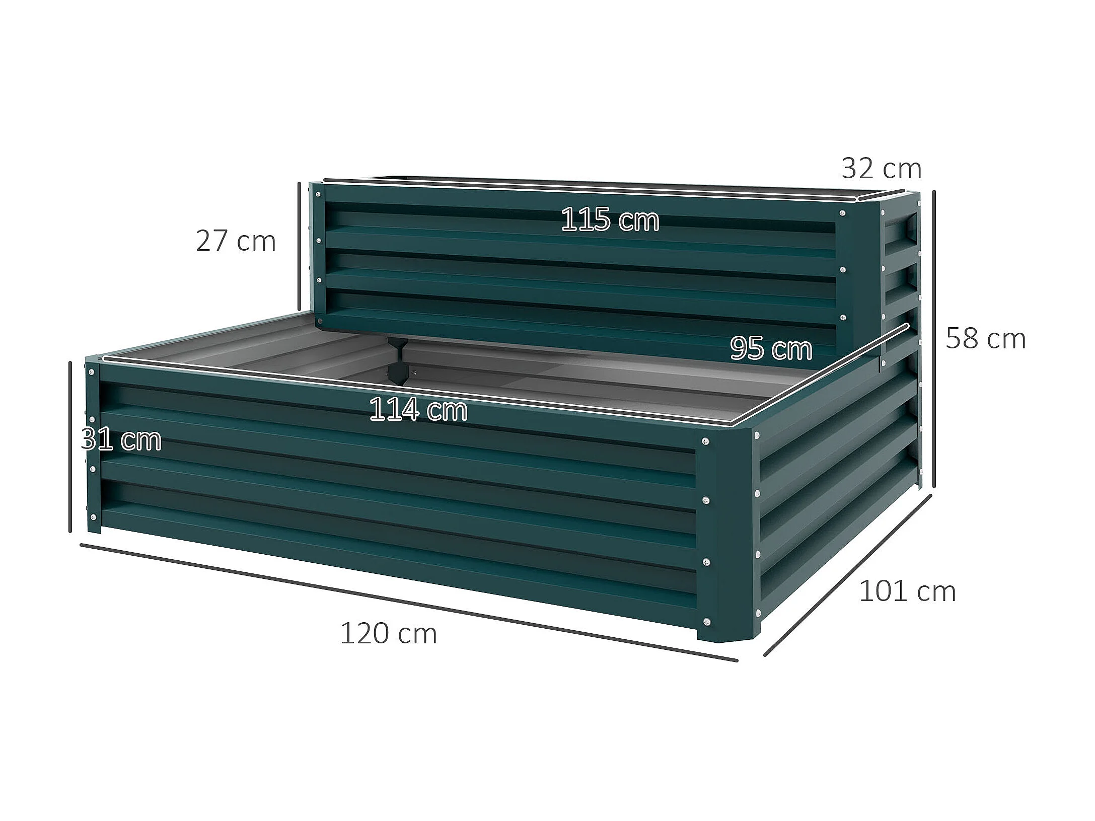 Jardinière carré potager 2 étages dim. 120L x 101l x 58H cm tôle d'acier ondulée vert