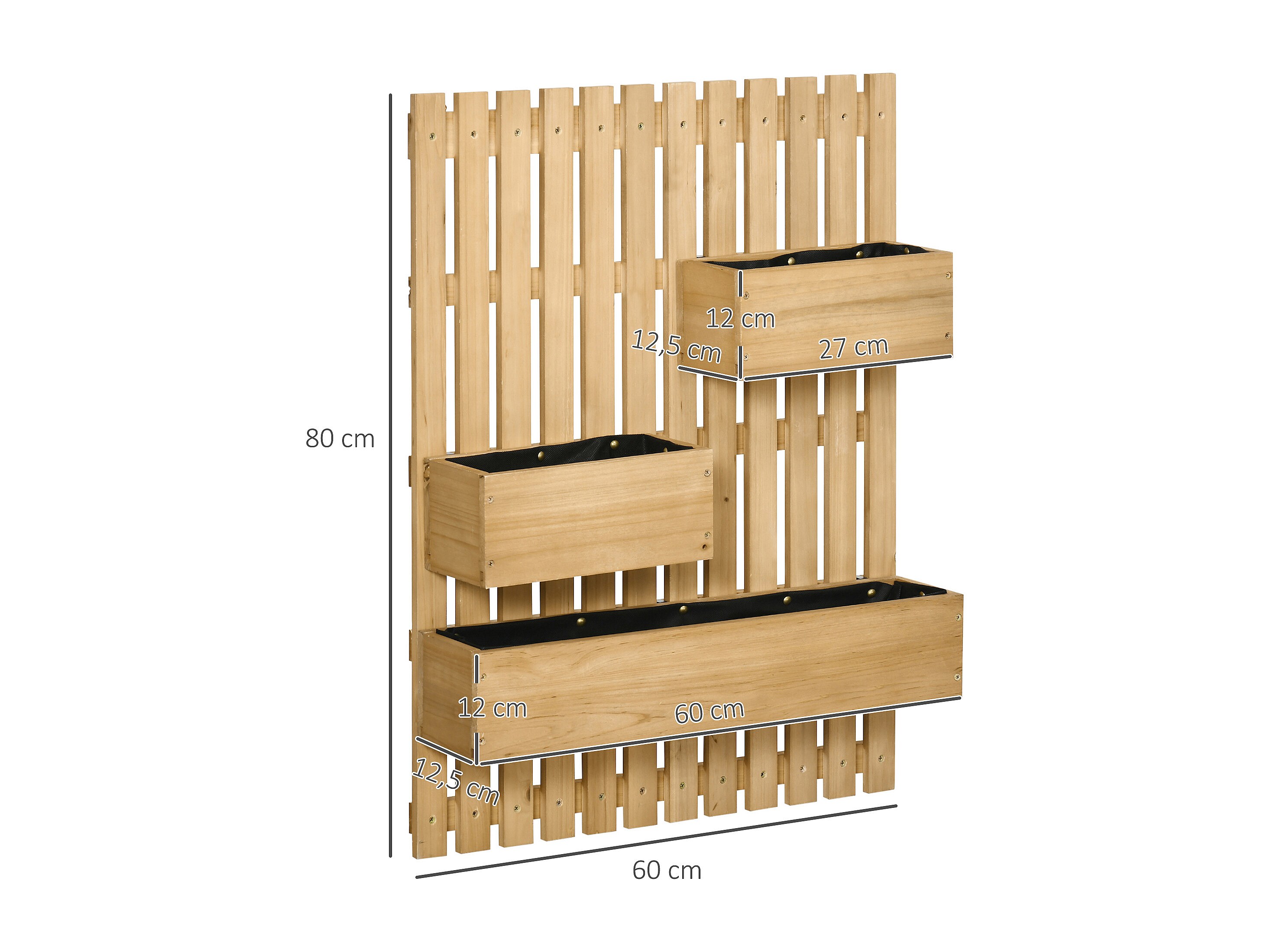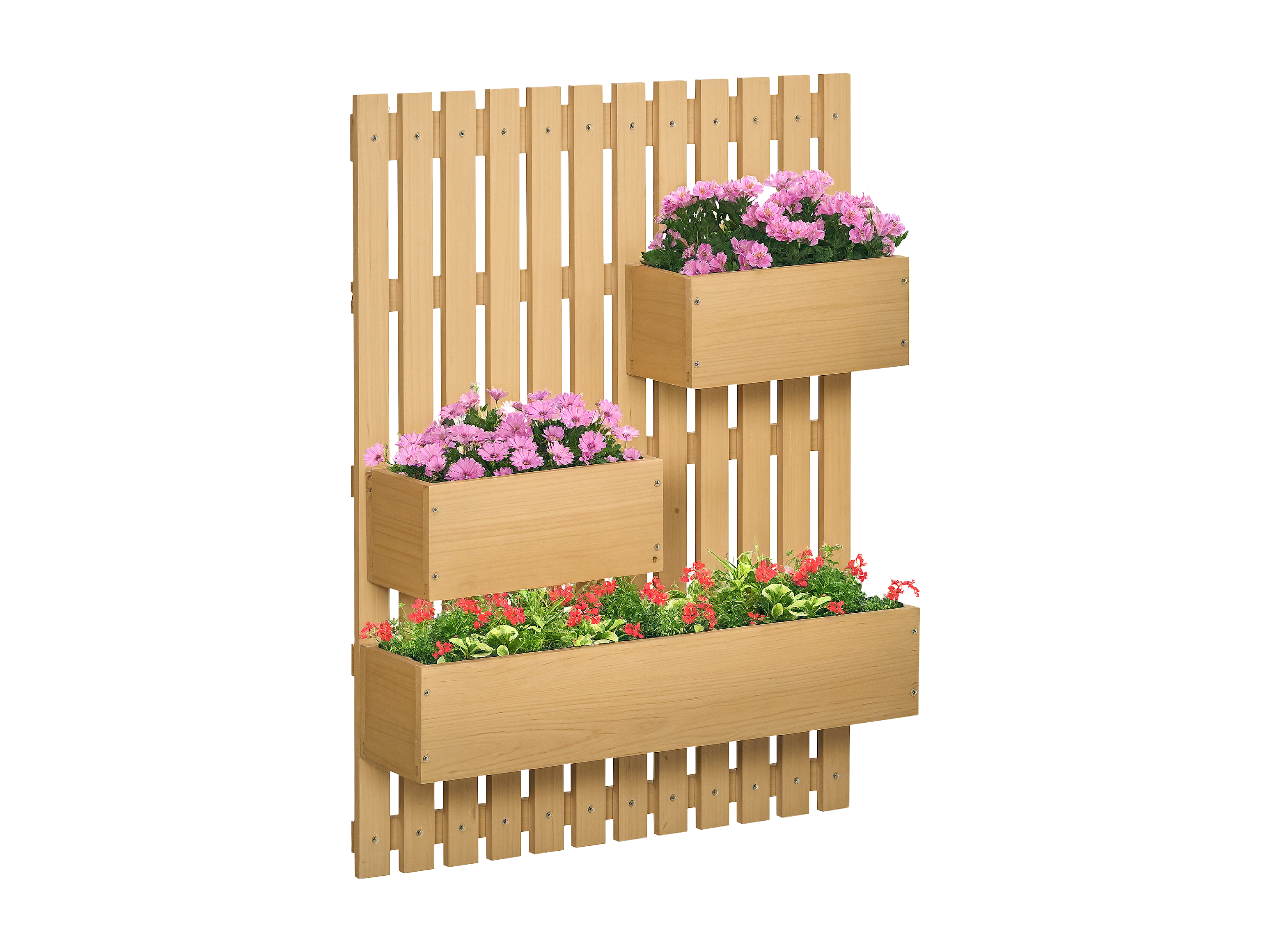 Jardinière murale avec treillis - lot de 3 jardinières murales - dim. 60L x 16l x 80H cm - bois sapin pré-huilé