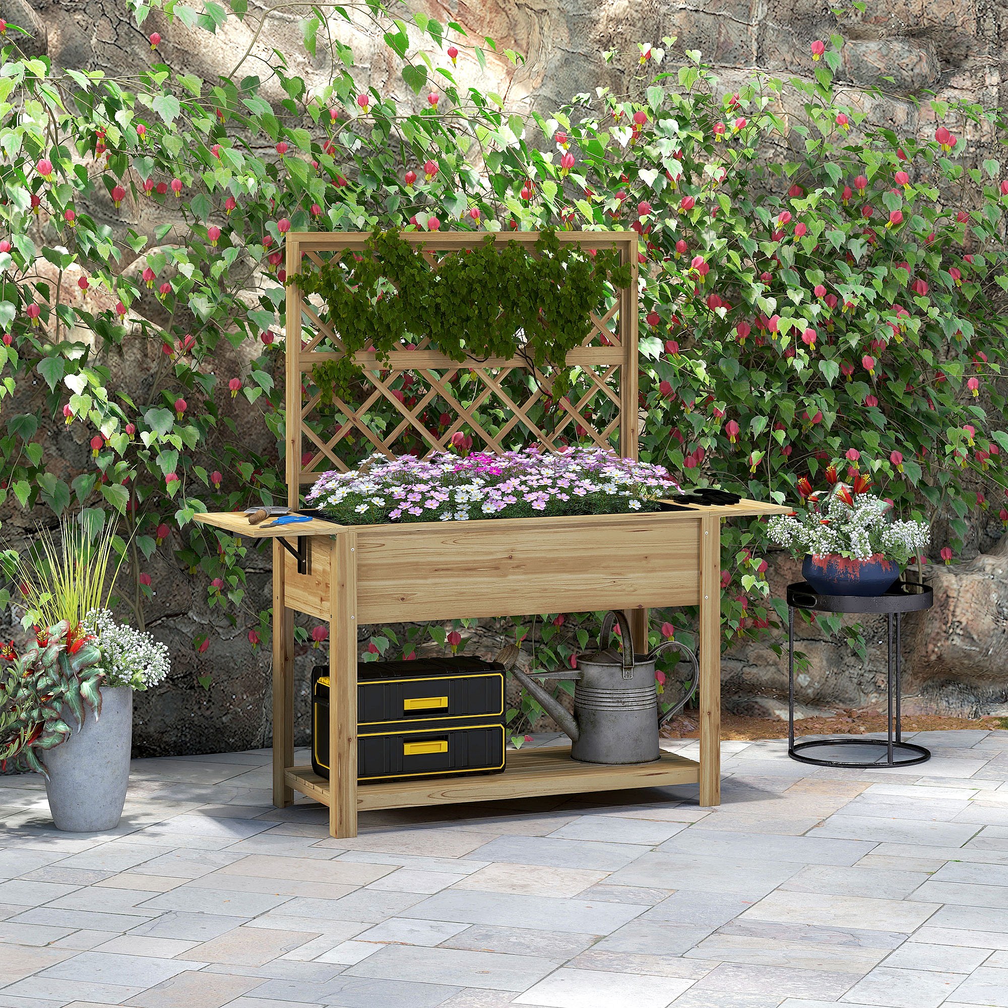 Jardinière Surélevée en Bois Base Ouverte, Grand Lit de Jardin Carré avec Bac à Compost pour Légumes Fleurs Herbes, pour Patio Balcon, Naturel, 124 x 124 x 25,5 cm