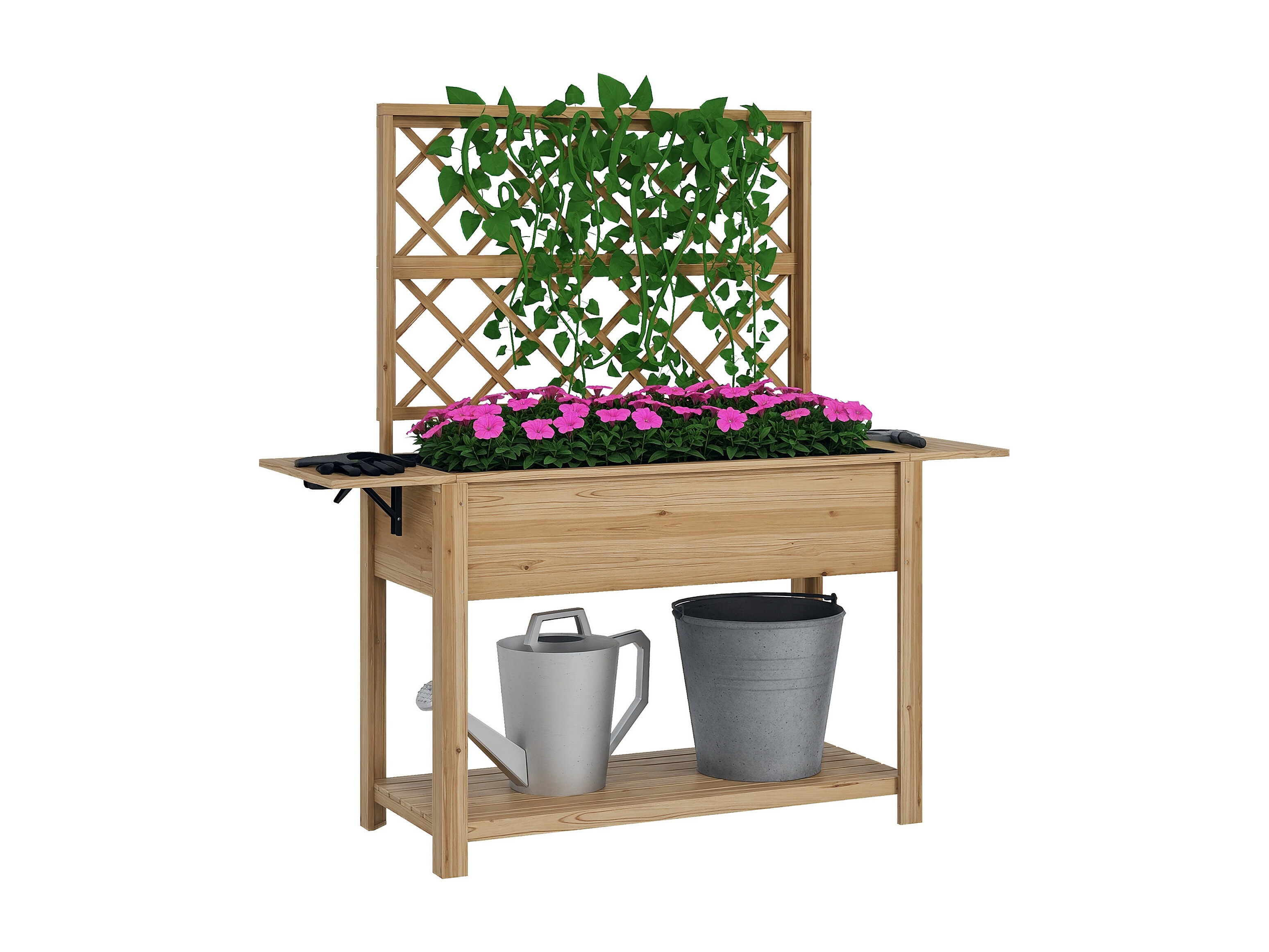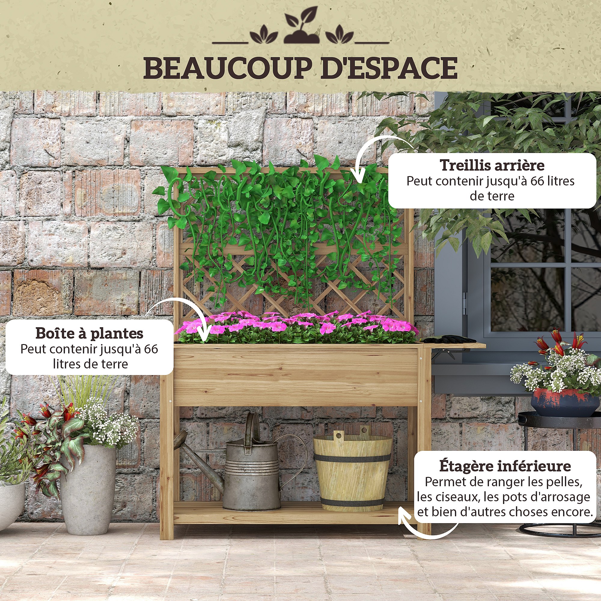 Jardinière rectangulaire sur pied avec treillis - tablettes, étagère - bois sapin autoclave