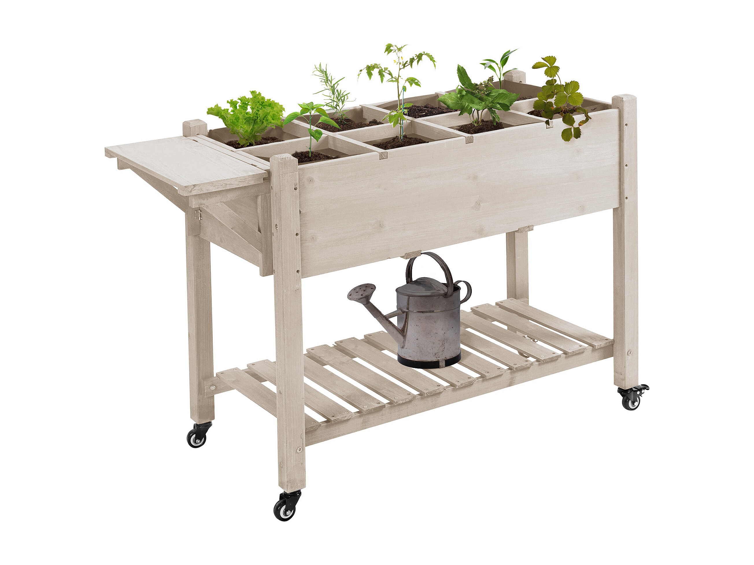 Jardinière sur pieds - potager sur roulettes - étagère, inserts d'irrigation, feutre de drainage inclus - bois massif sapin