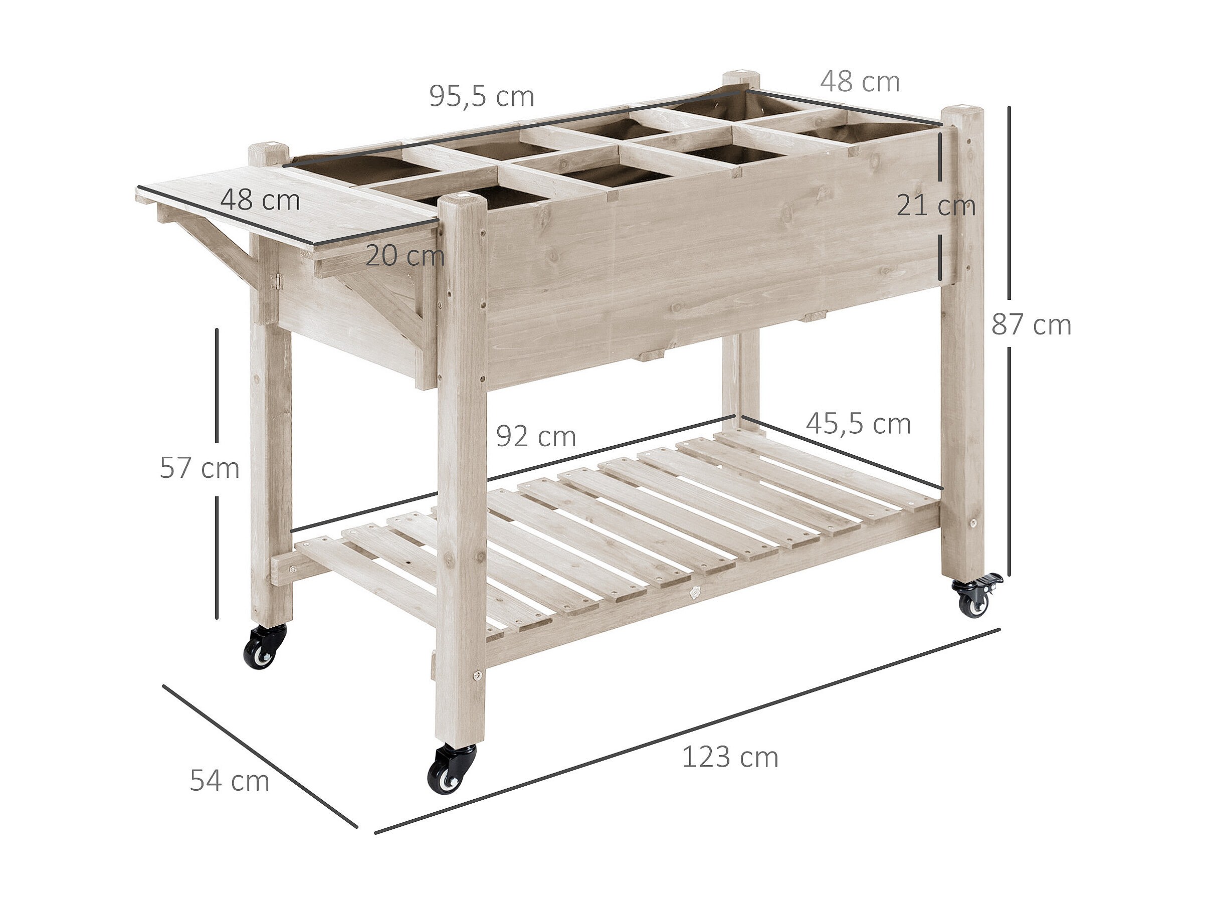 Jardinière sur pied - potager sur roulettes - étagère, tablette rabattable, inserts d'irrigation, feutre drainage - bois pré-huilé clair