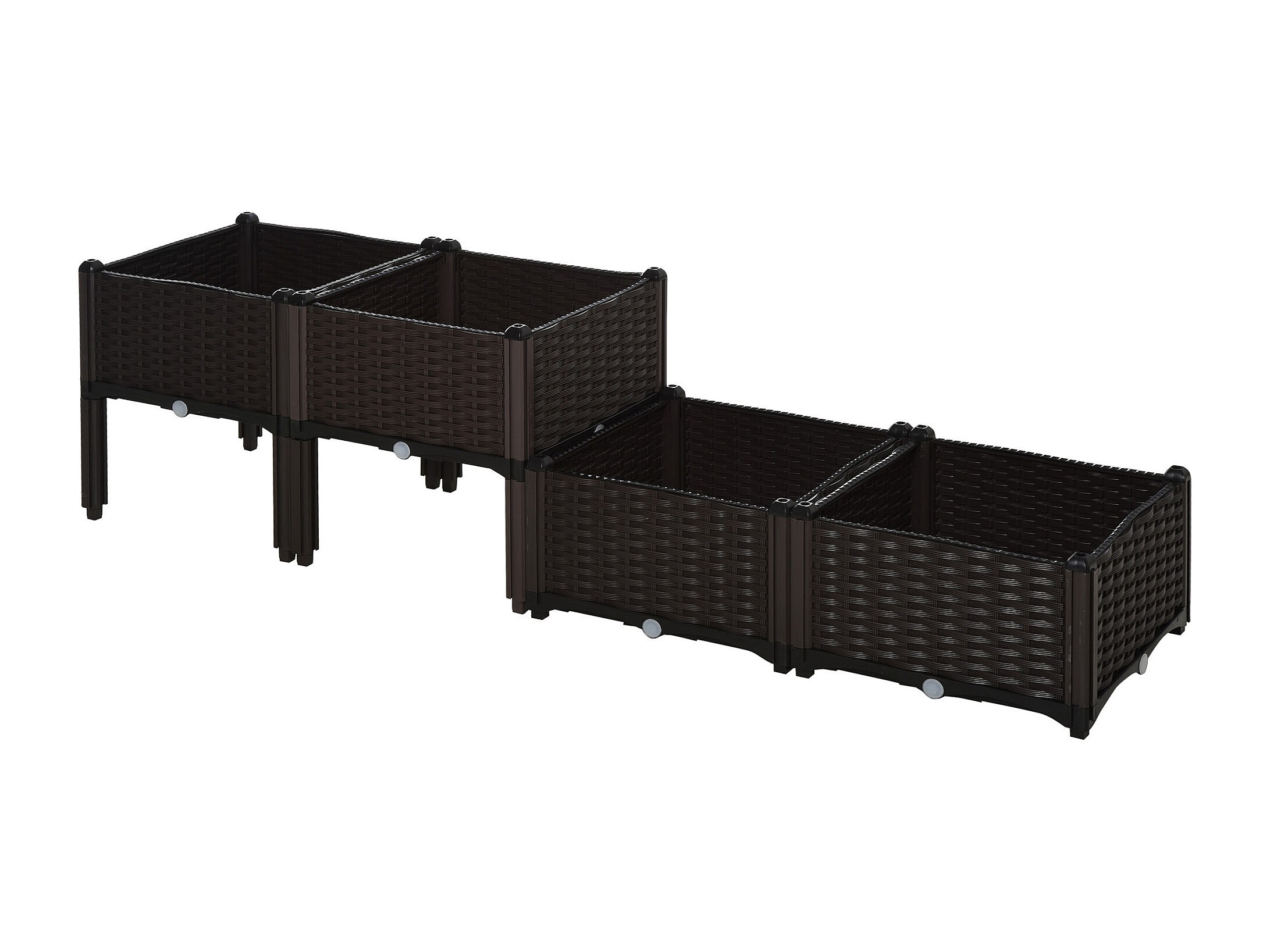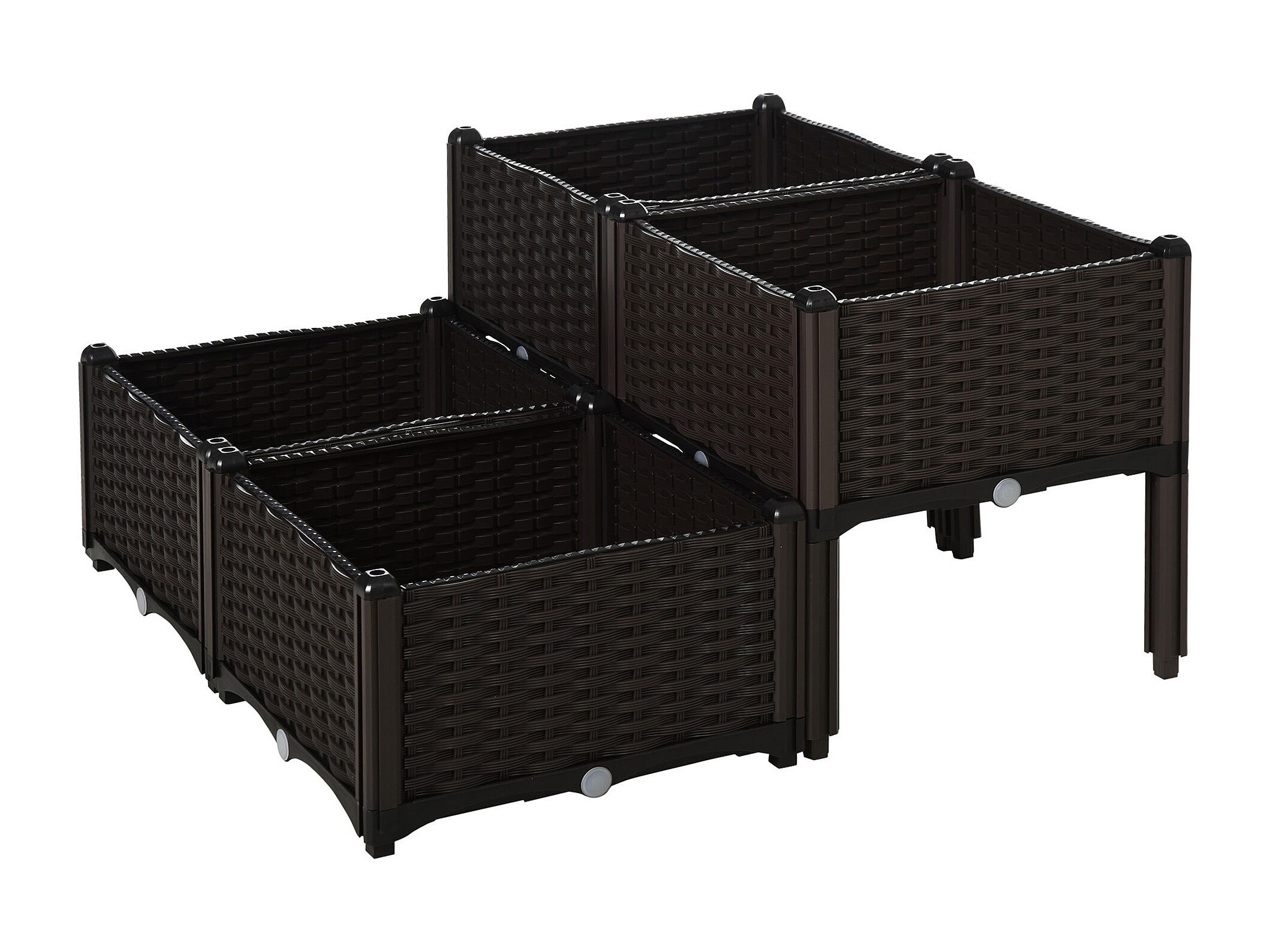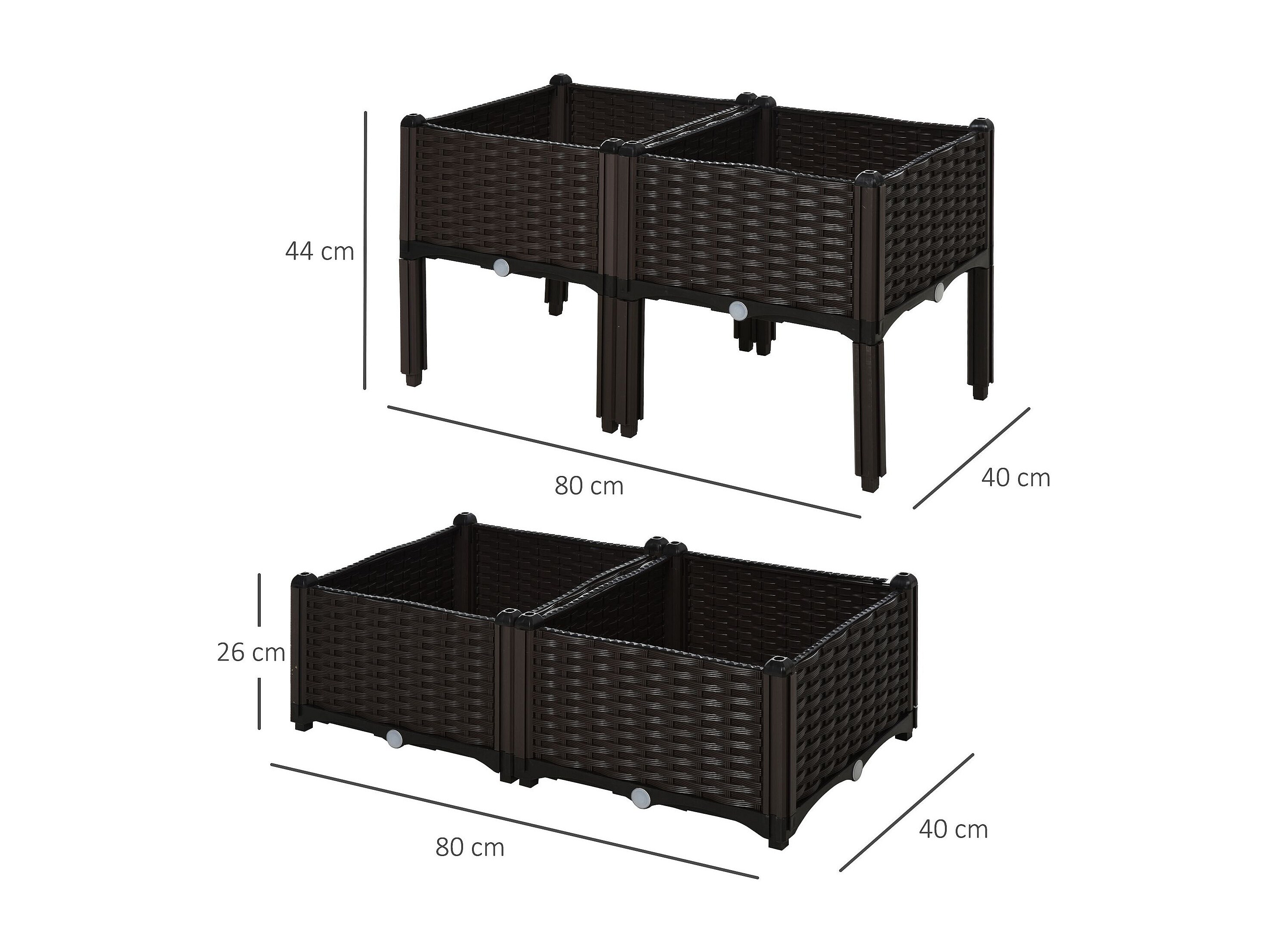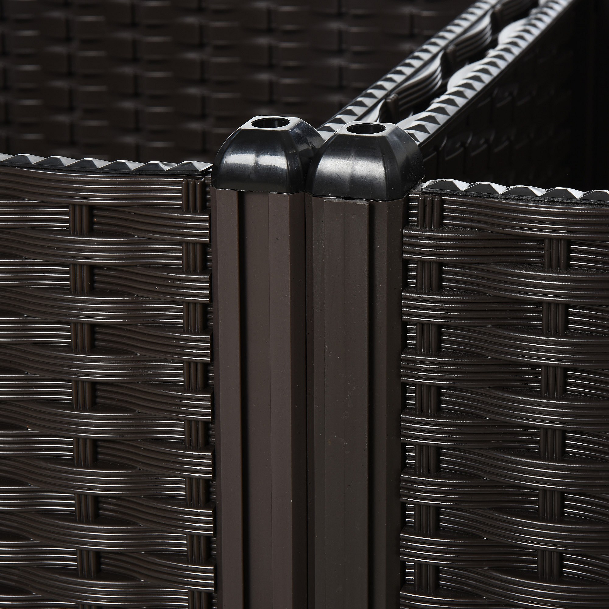 Jardinière sur pieds carré potager 2 étages dim. 80L x 80l x 44H cm insert d'irrigation plastique imitation rotin tressé chocolat