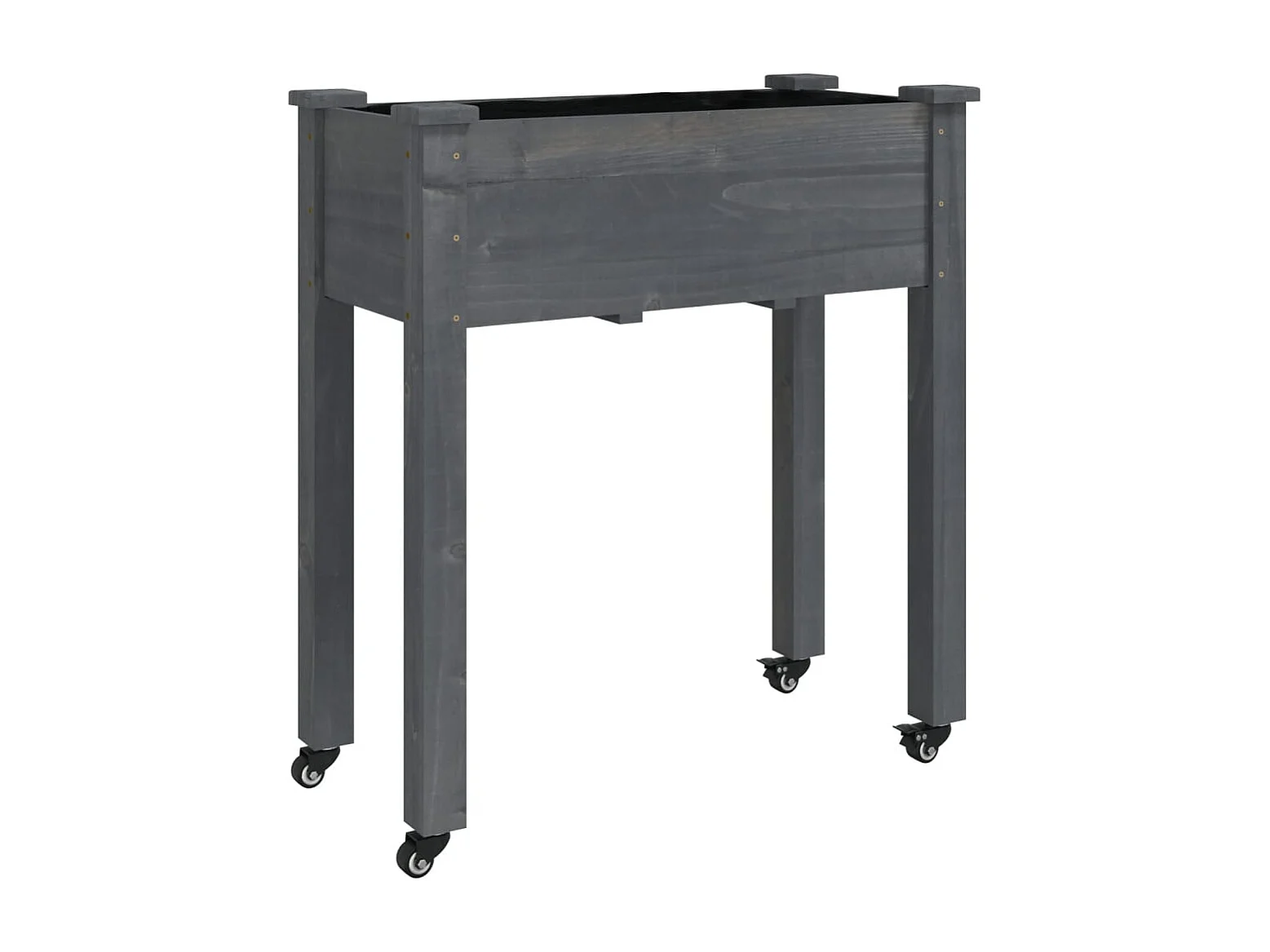 Jardinière sur roues avec doublure gris 71x37x80 cm bois sapin