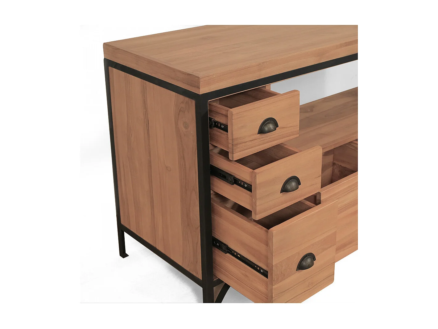 Jazz - Meuble salle de bain industriel en teck et métal 145 cm
