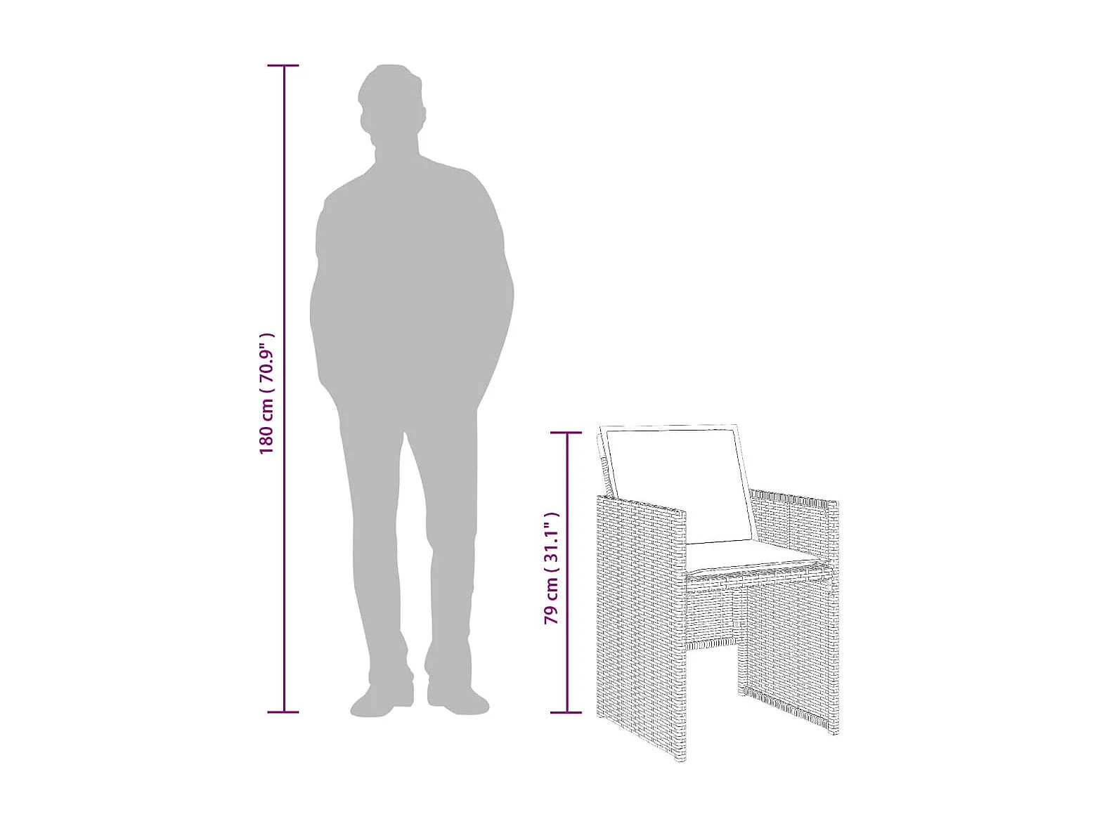 Jeroen Ensemble à manger de jardin 15 pcs coussins noir résine tressée