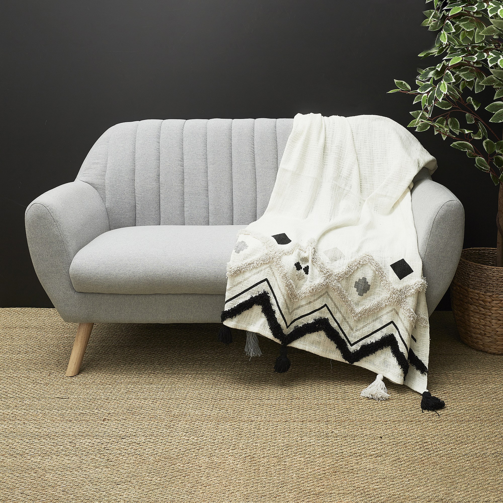 Jete De Canape Ethnique Tufte Noir 130x150cm