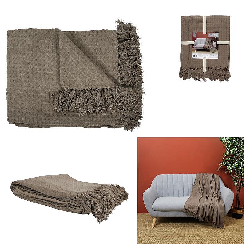 Jete De Canape Gaufre Taupe130x160cm Marron