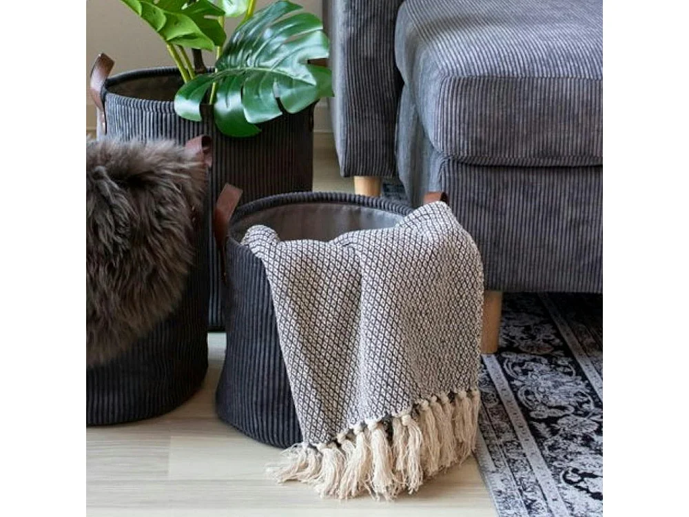 Jeté de canapé gris à losanges - franges, 130x160 cm FALLON