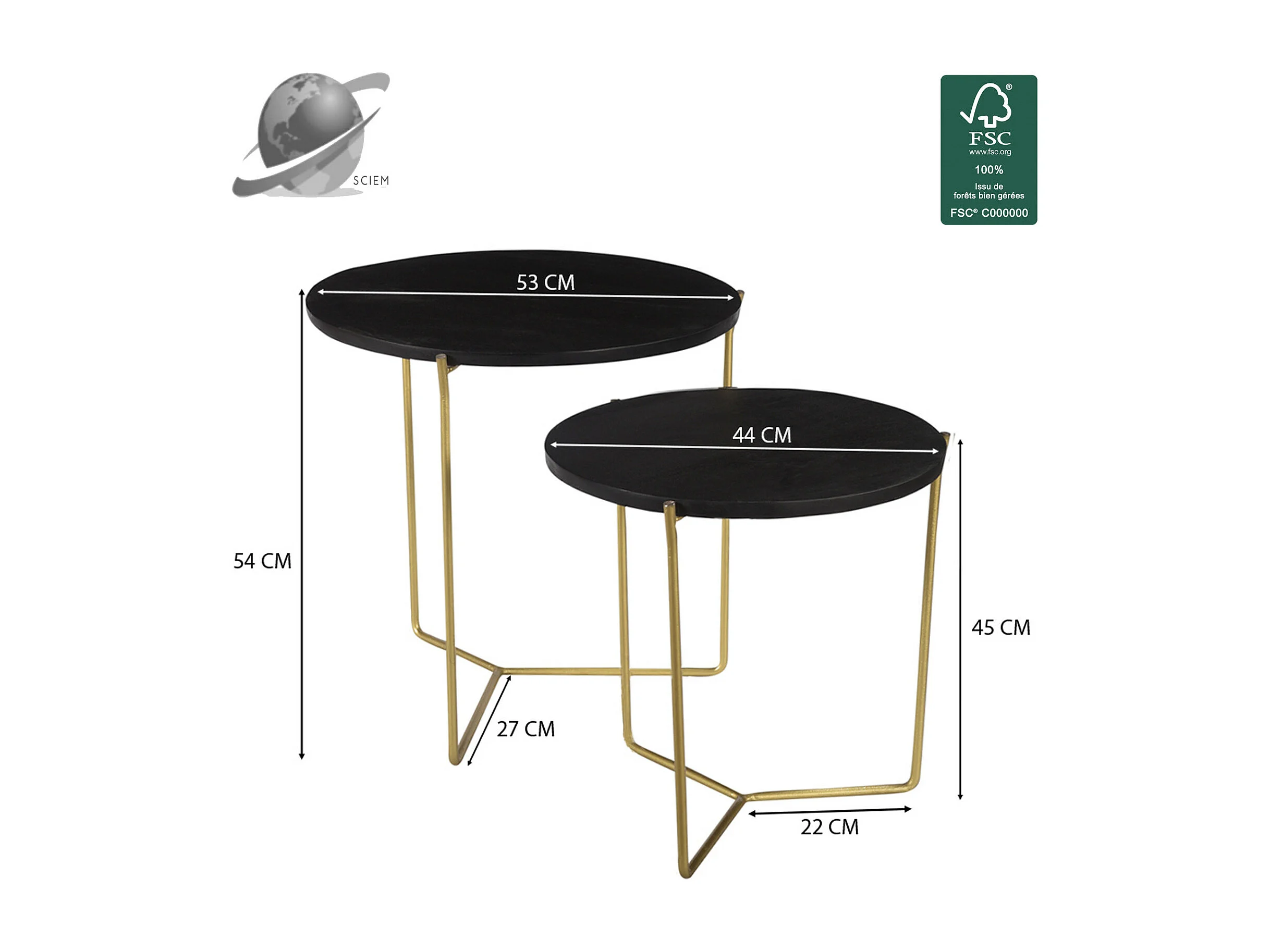 JULIA-Set de 2 Tables basses bois noir et laiton
