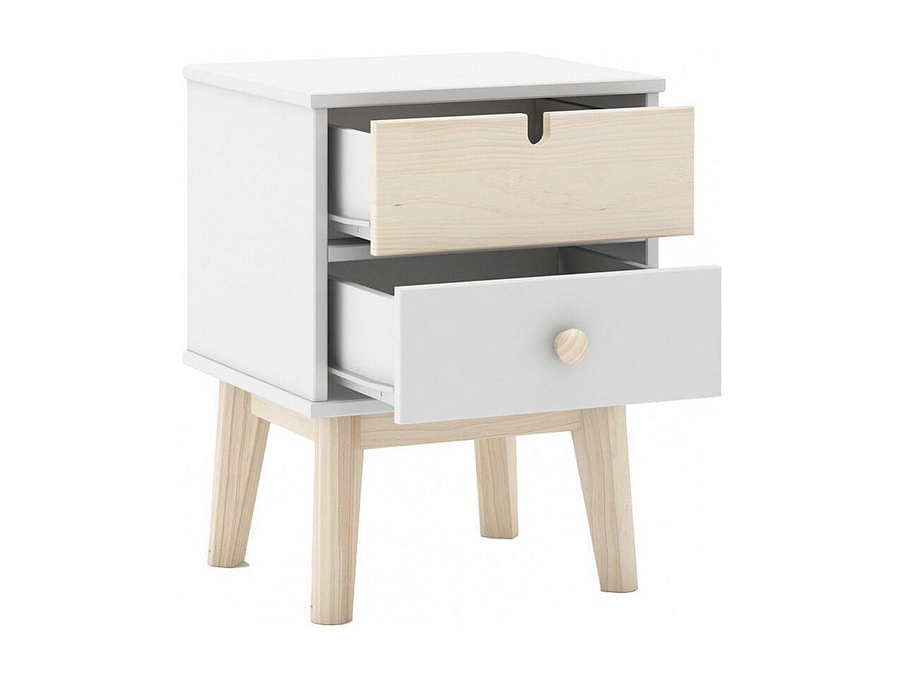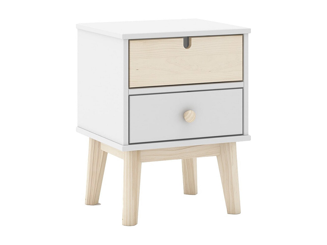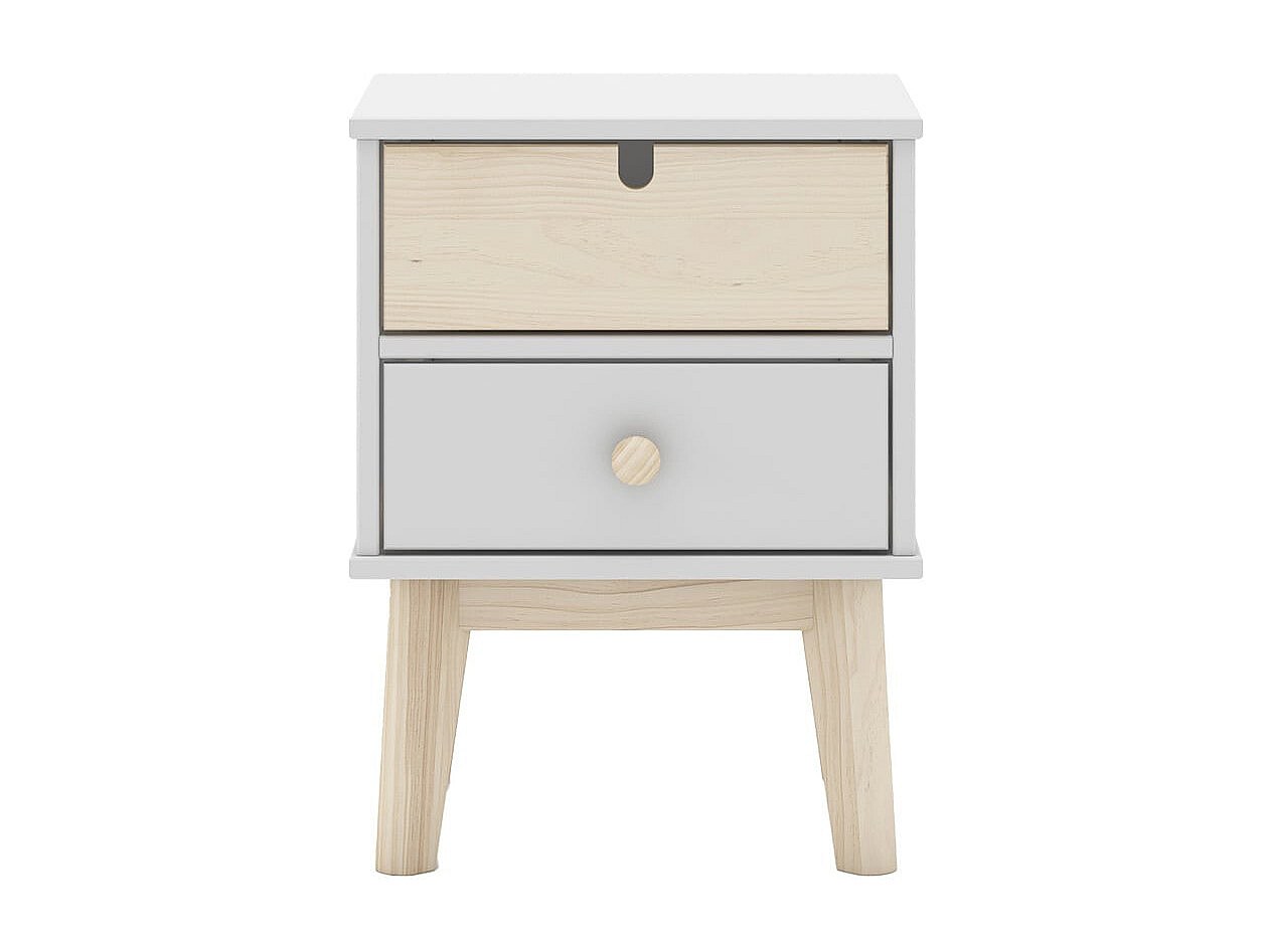 KAINA - Chevet 2 Tiroirs en MDF et Pin Coloris Blanc et Naturel