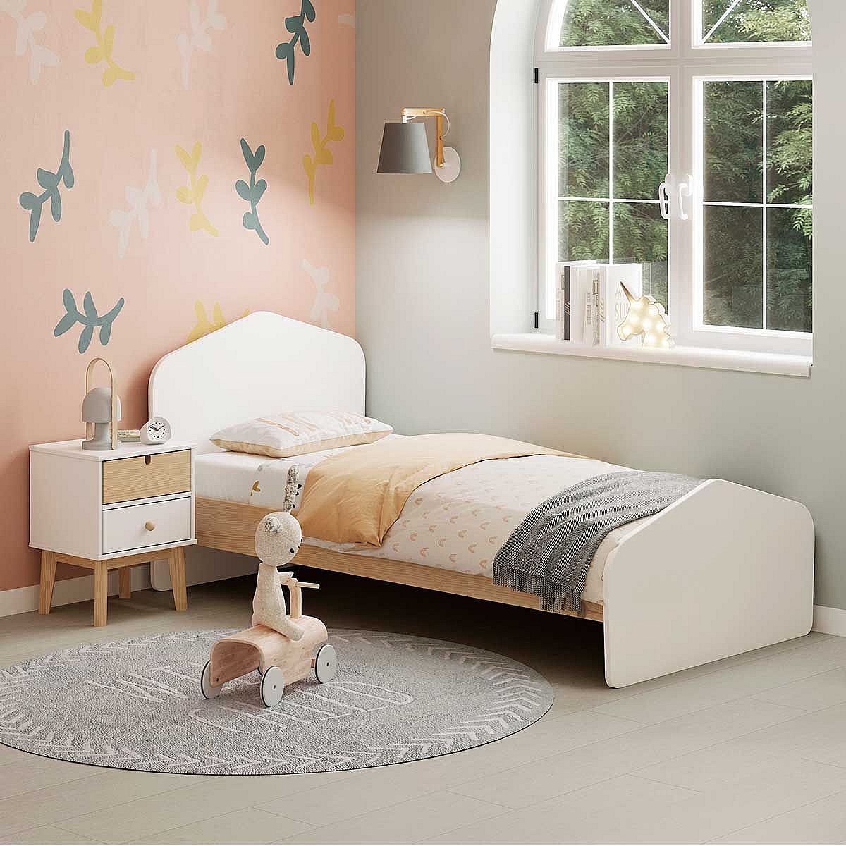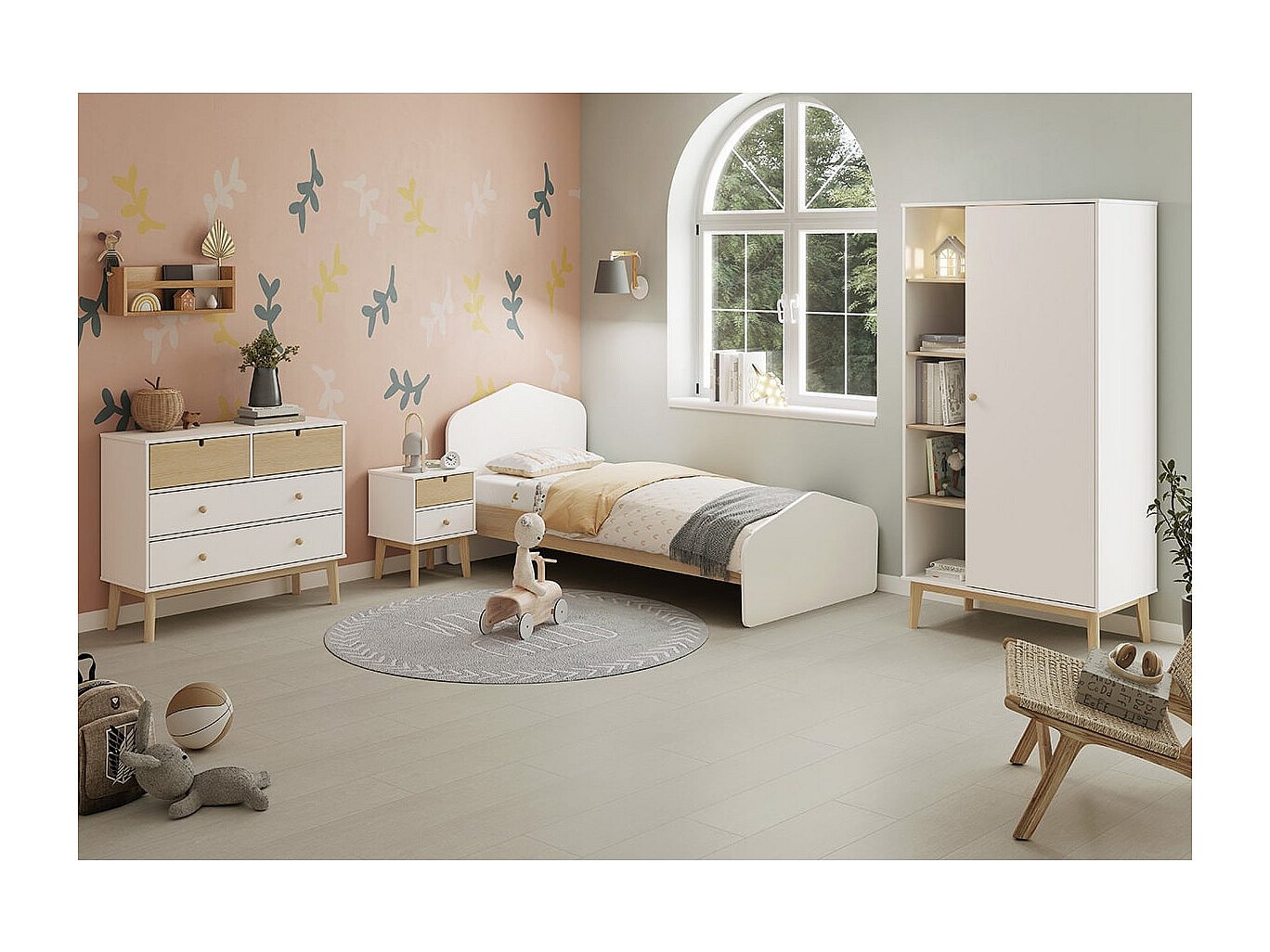 Table de chevet enfant 2 tiroirs en bois massif blanc - Melvin