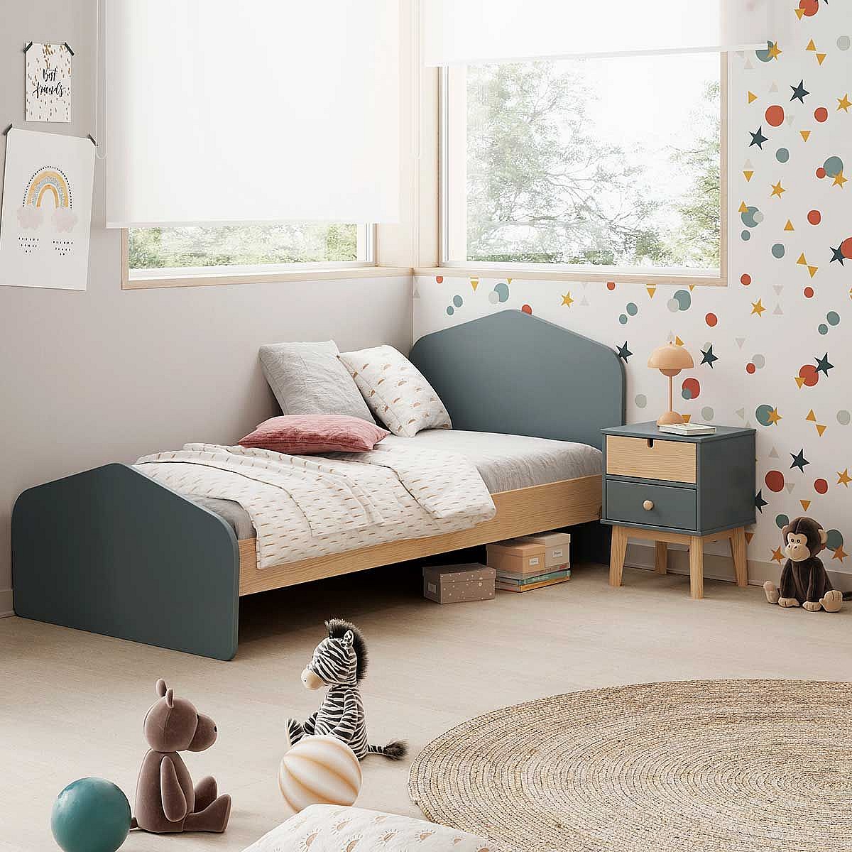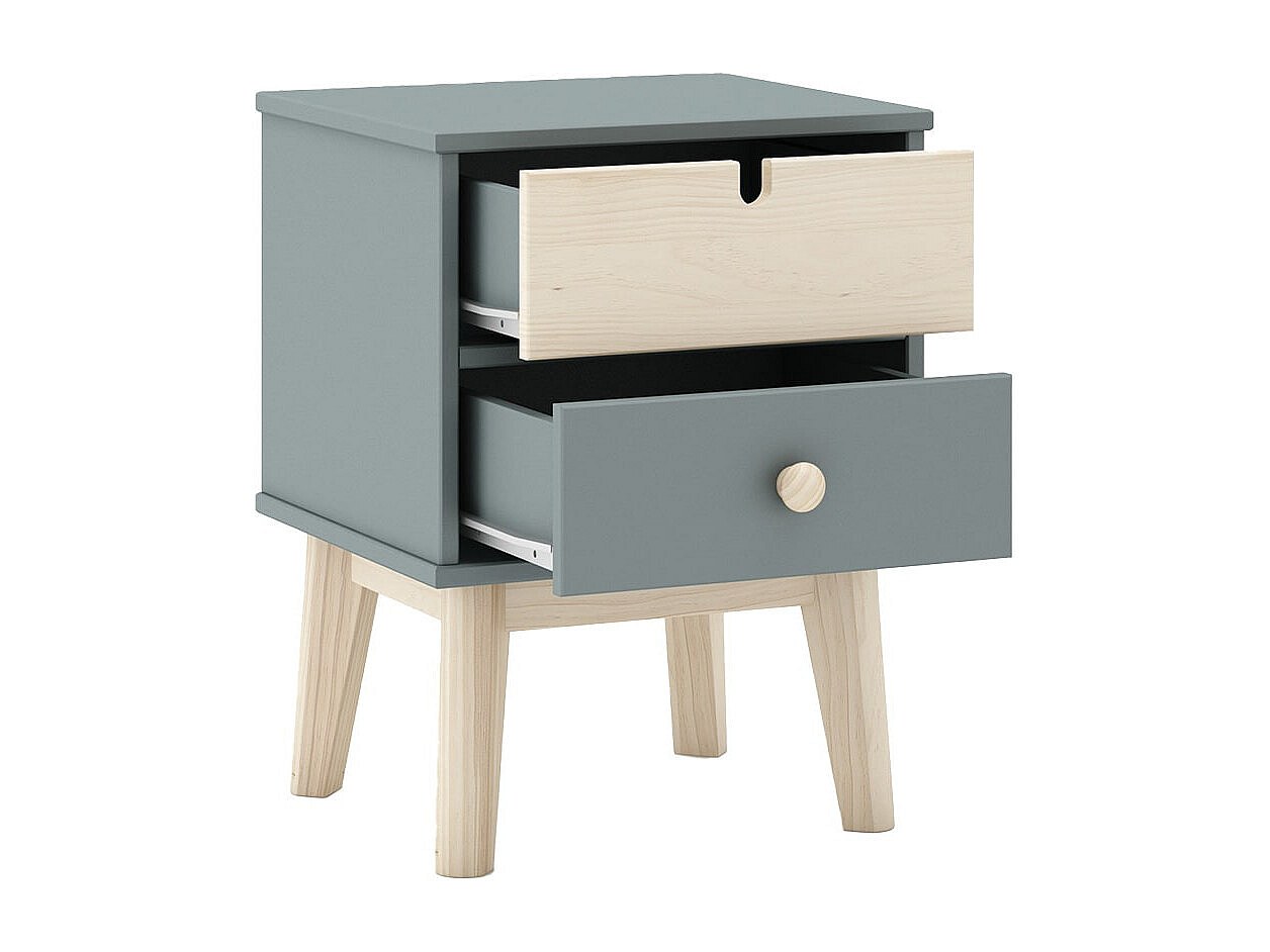 Table de chevet enfant 2 tiroirs en bois massif vert pétrole - Melvin