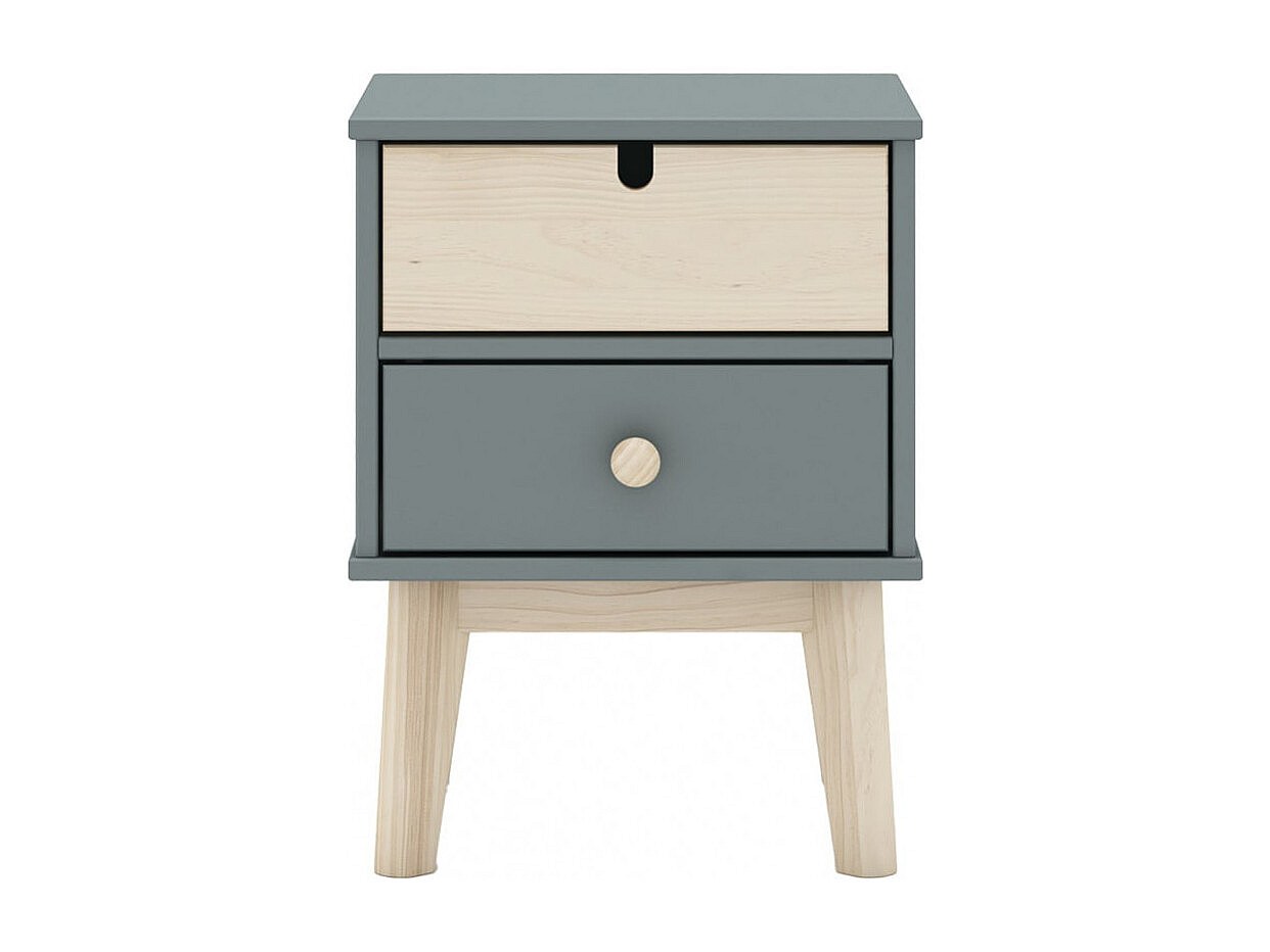 KAINA - Chevet 2 Tiroirs en MDF et Pin Coloris Gris Vert et Naturel