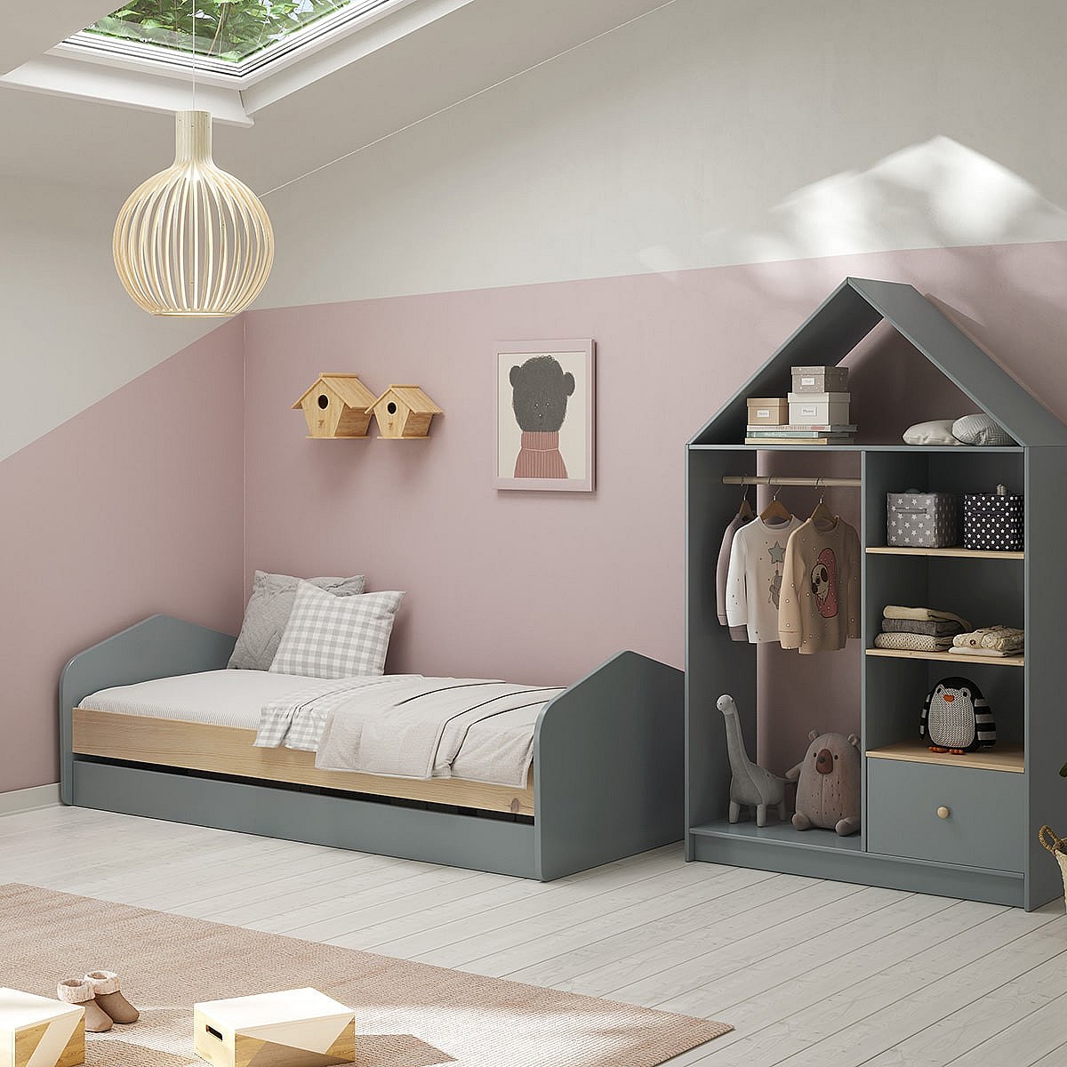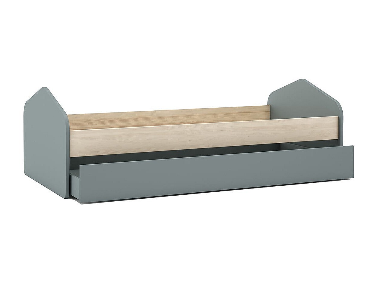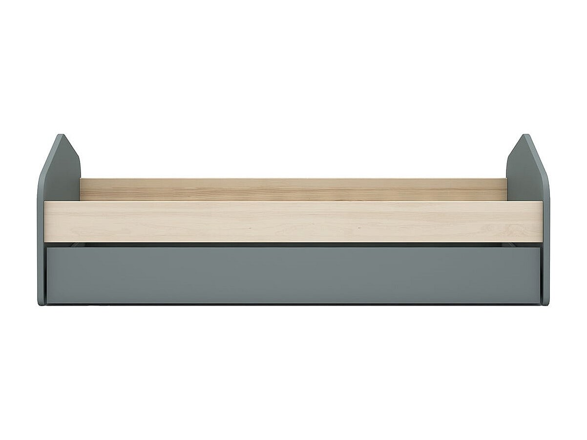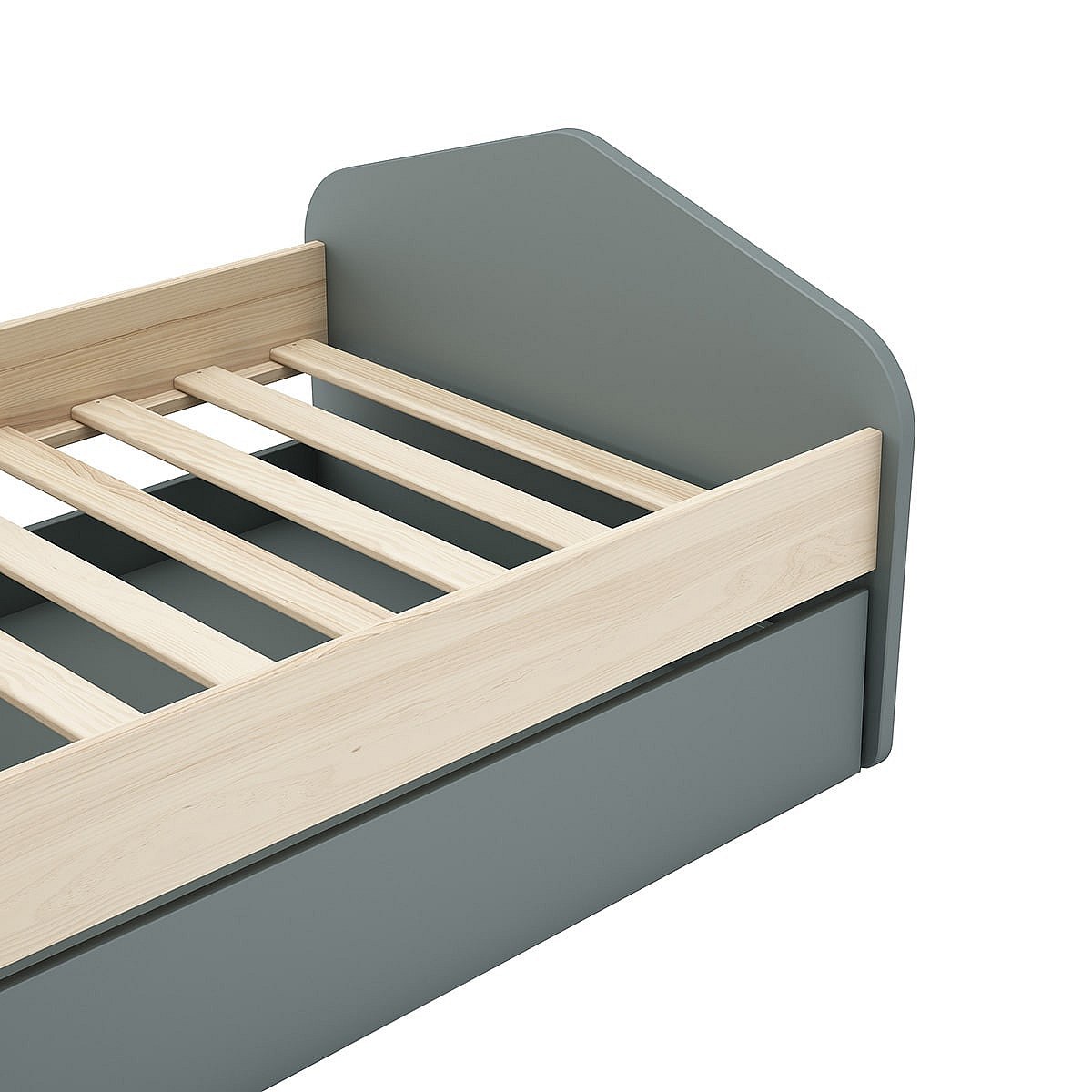 KAINA - Lit 90x200cm avec Tiroir en MDF et Pin Coloris Gris Vert et Naturel