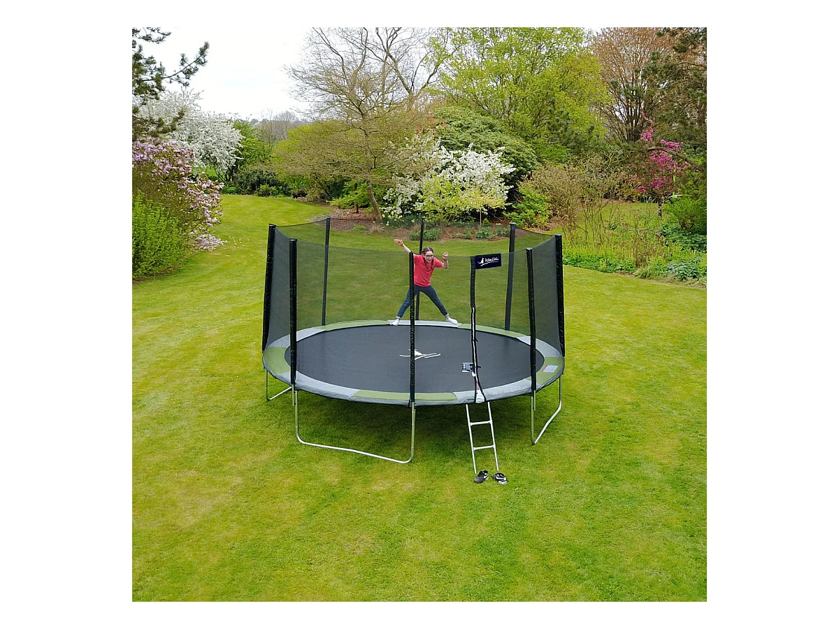 Kangui - Trampoline de jardin rond 430 cm + filet de sécurité | PUNCHI Vert 430