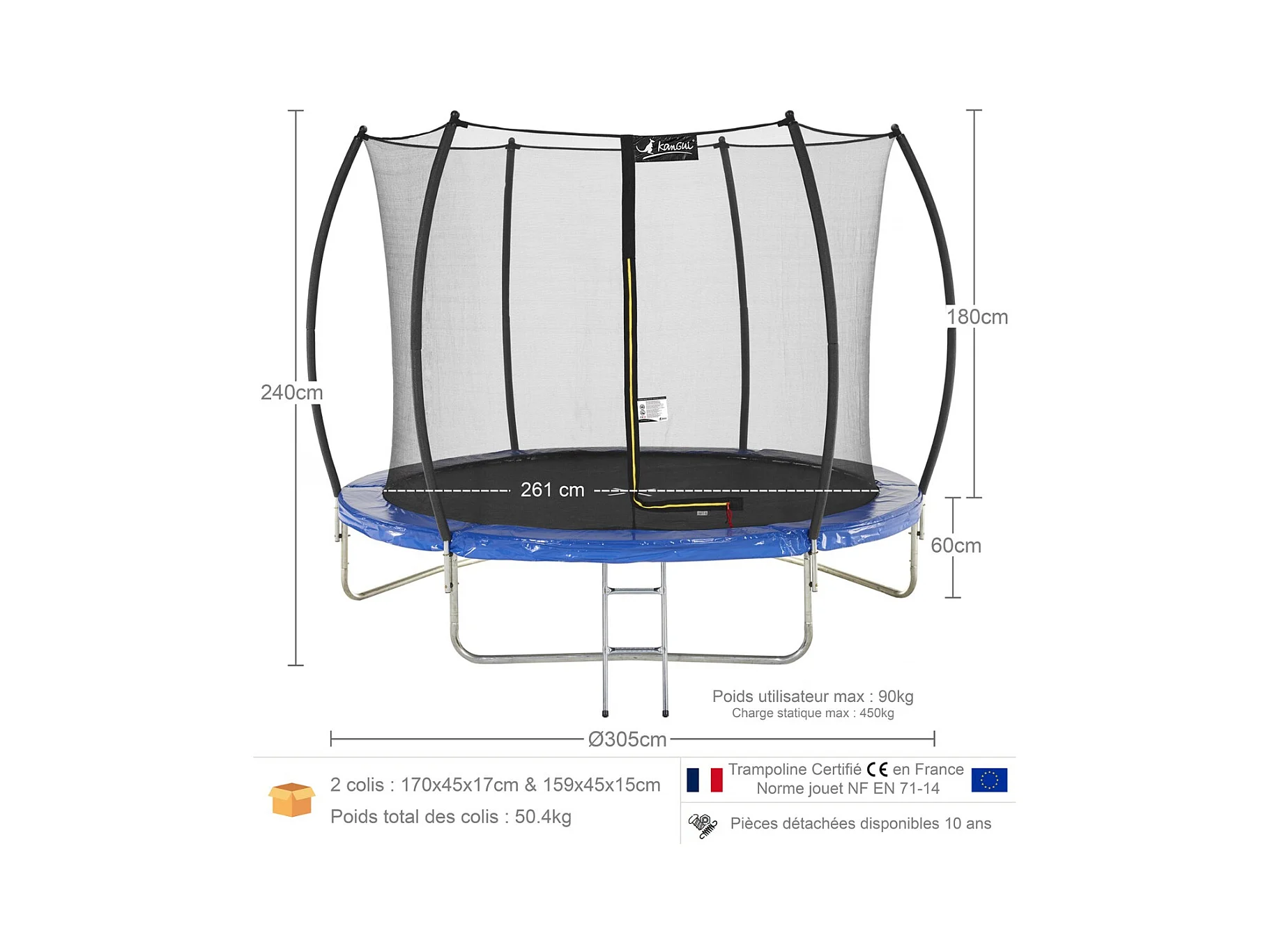 Kangui - Trampoline rond Ø300cm avec filet de sécurité et échelle - Bleu - FPR 300