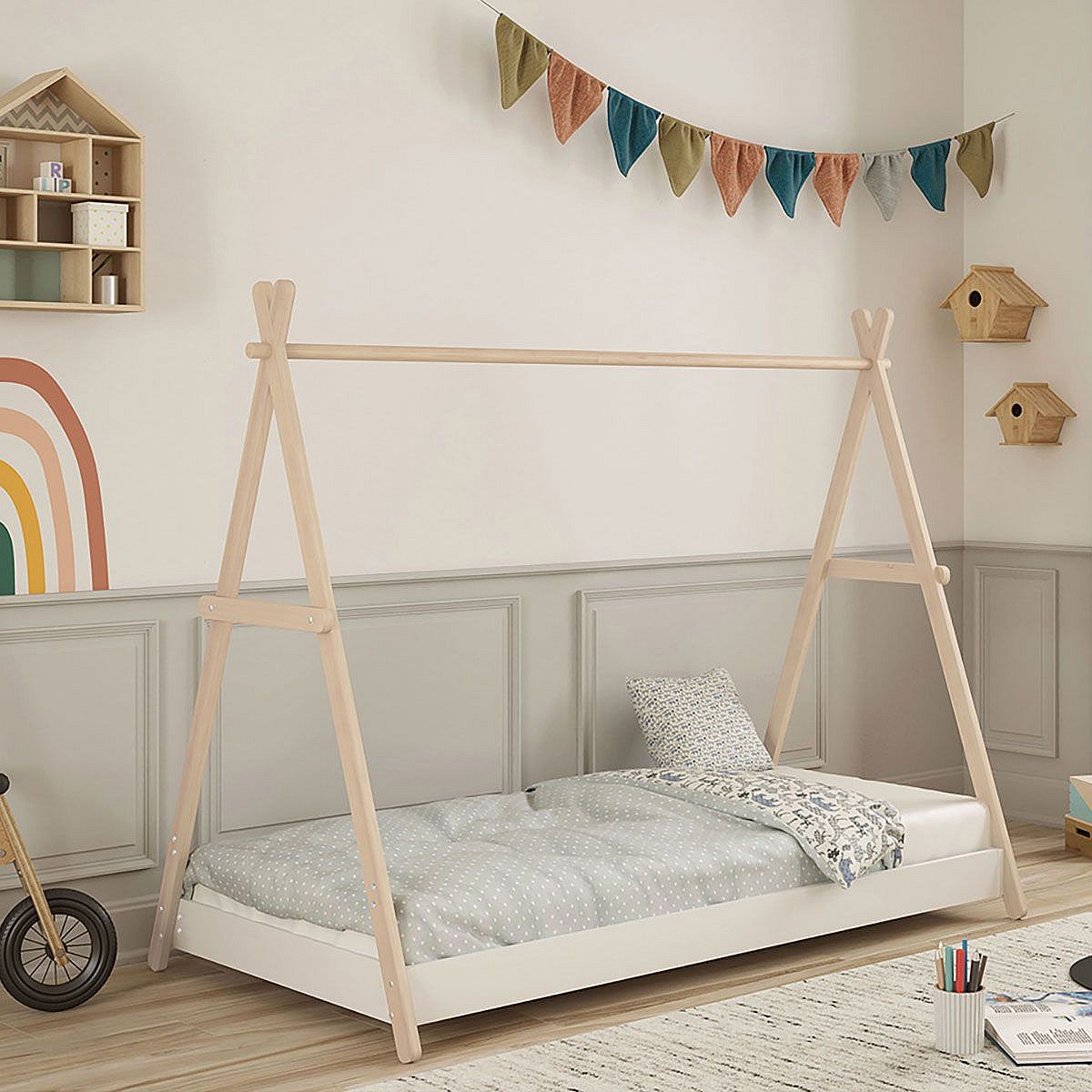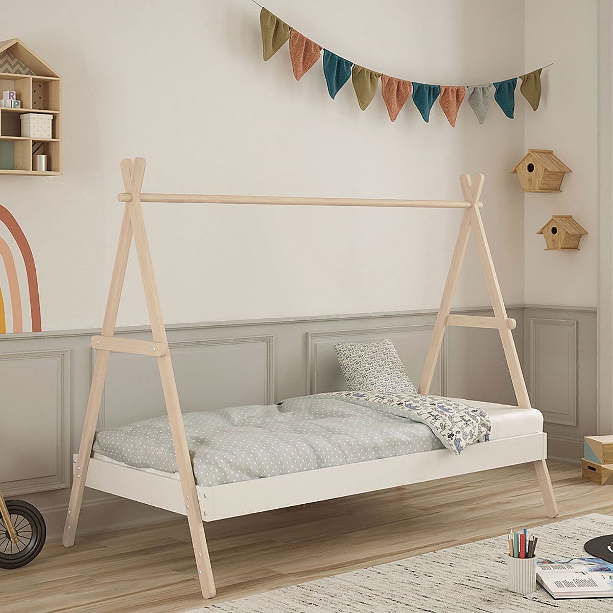 KANOA - Lit Tipi 90x200cm Hauteur Réglable en MDF et Pin Coloris Blanc