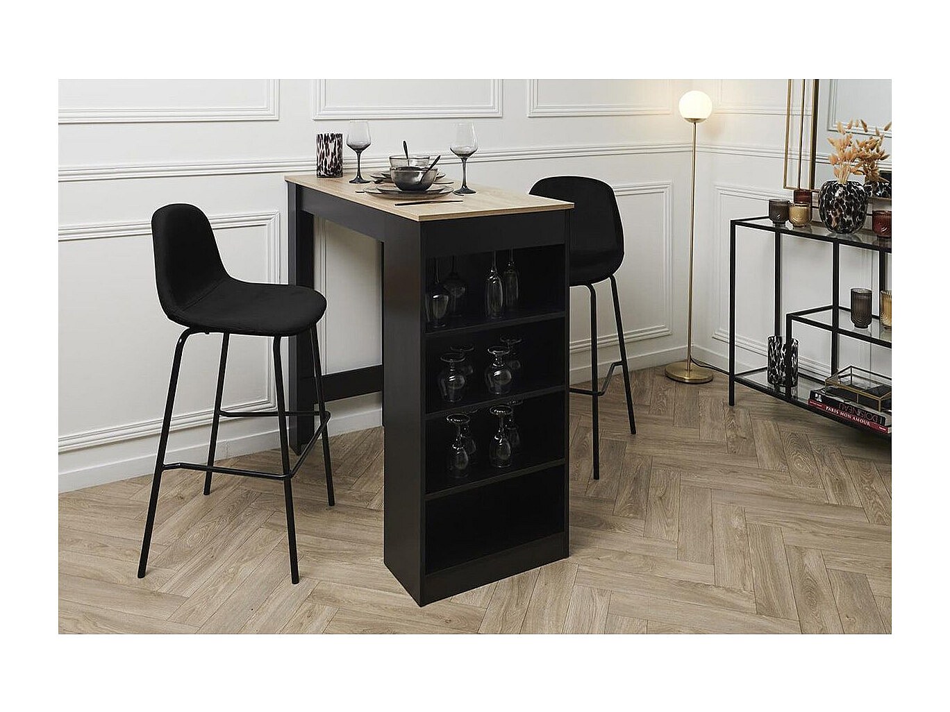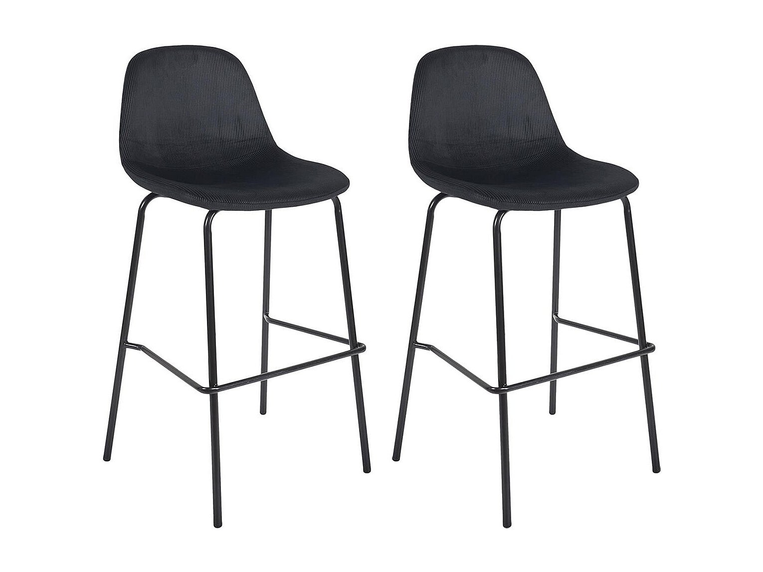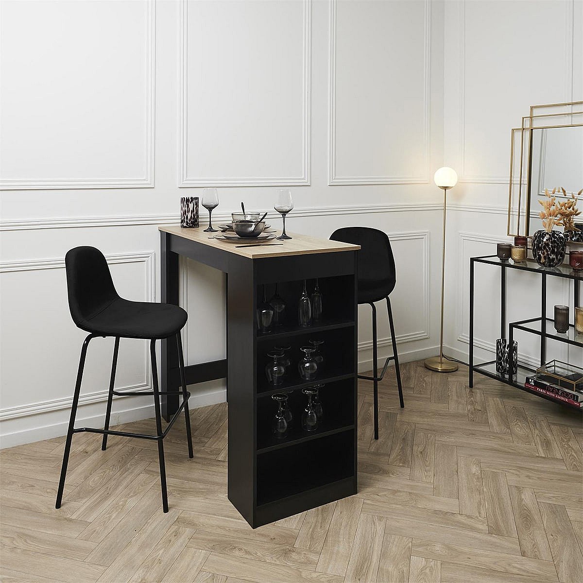 KANPE - Ensemble Table de Bar avec Etagères + 2 Tabourets Velours Côtelé Noir Konae