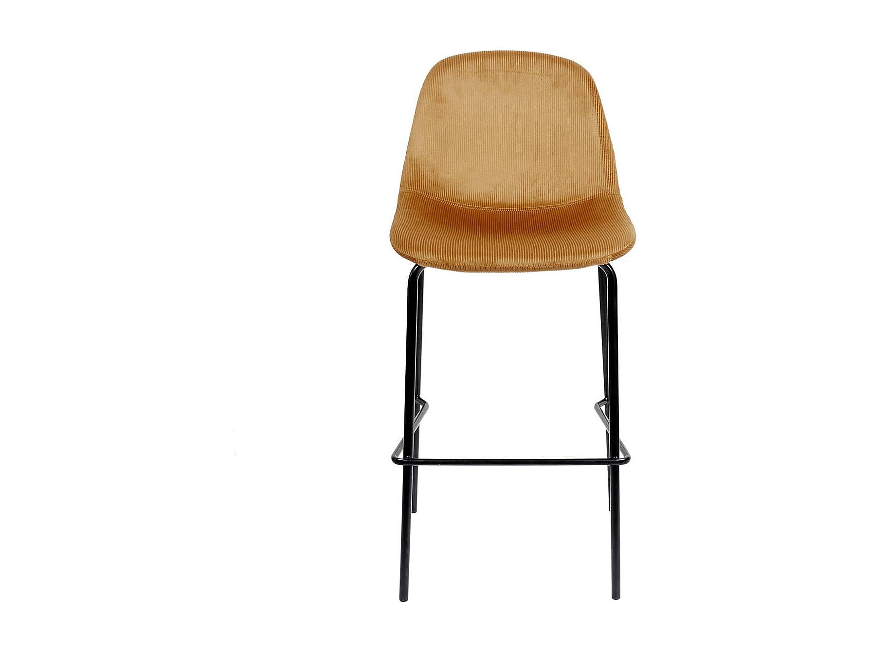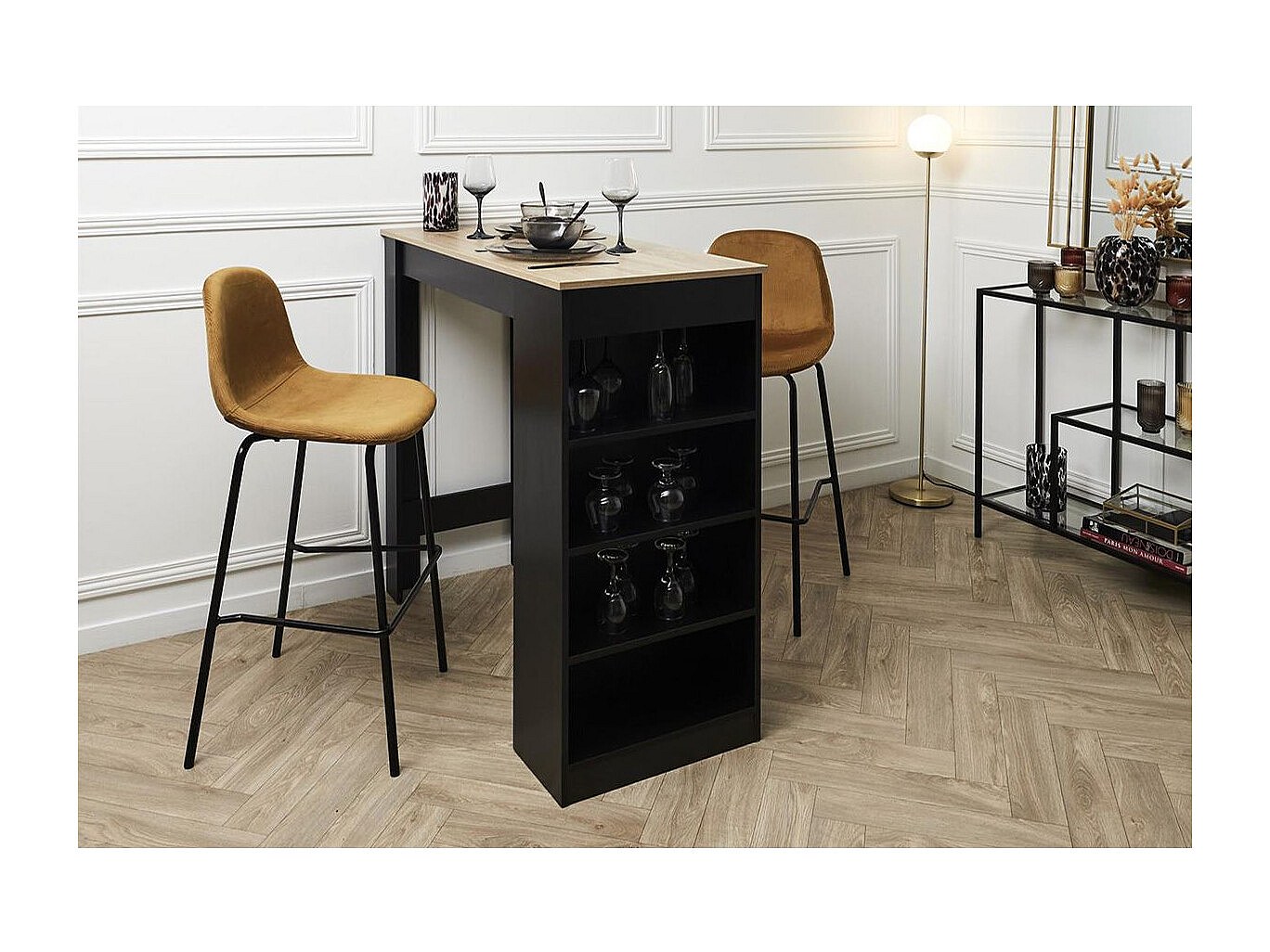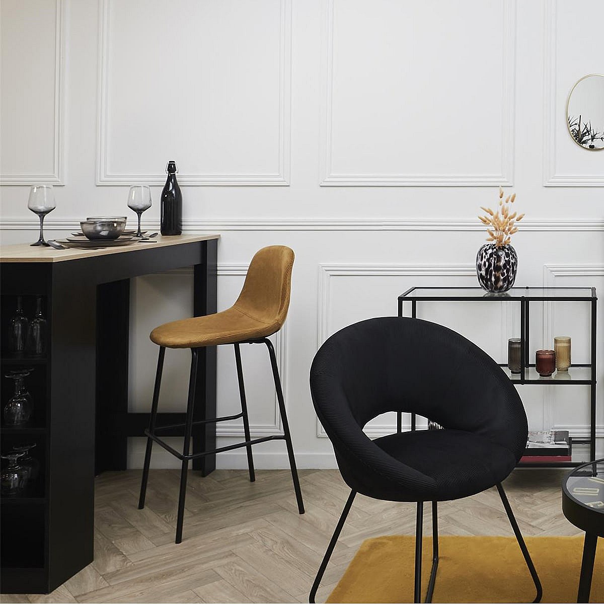 KANPE - Ensemble Table de Bar avec Etagères + 2 Tabourets Velours Côtelé Ocre Konae