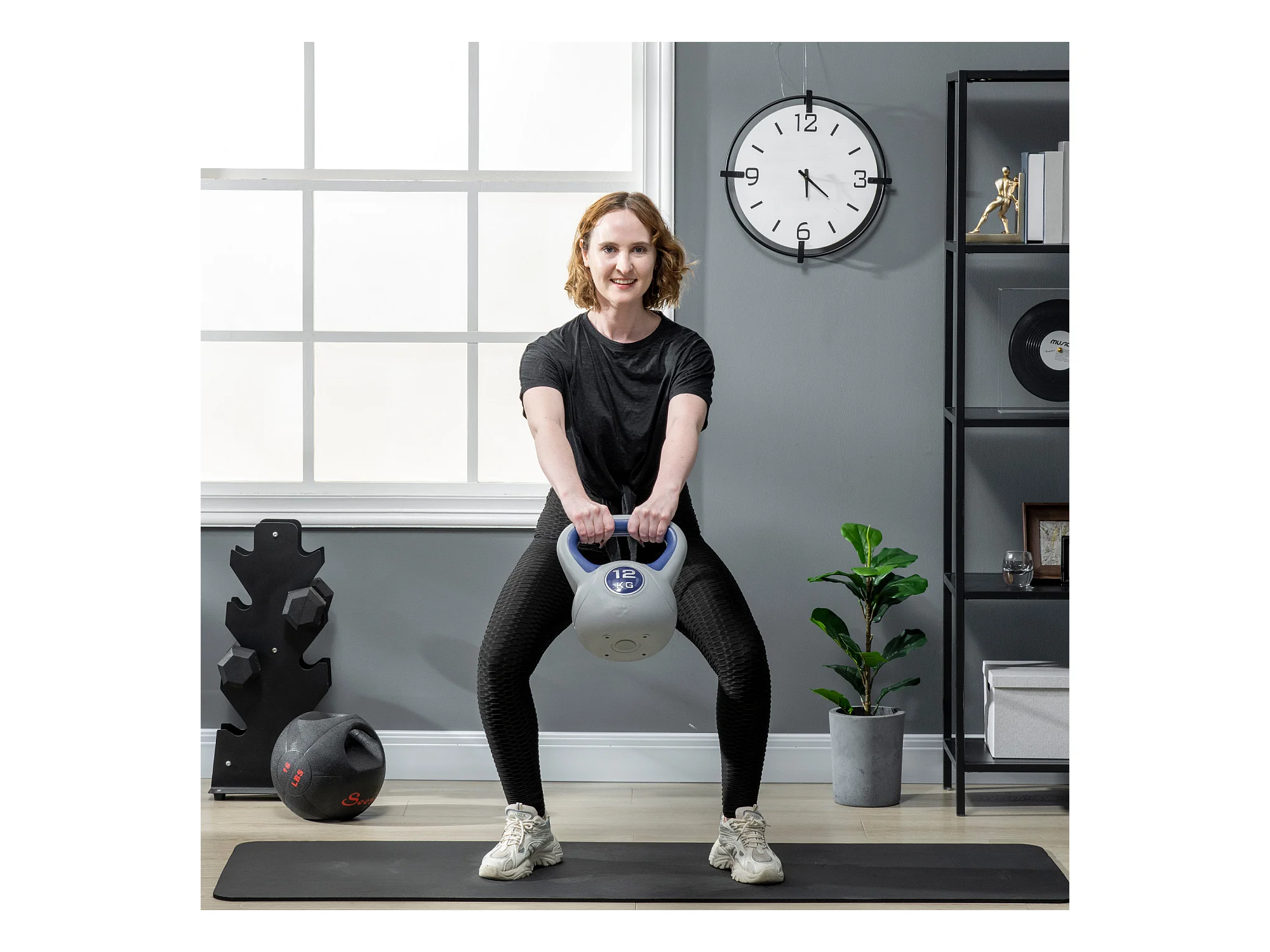 Kettlebell 12 KG, poids de sol pour entraînement, plastique, bleu (24x17x28 cm)