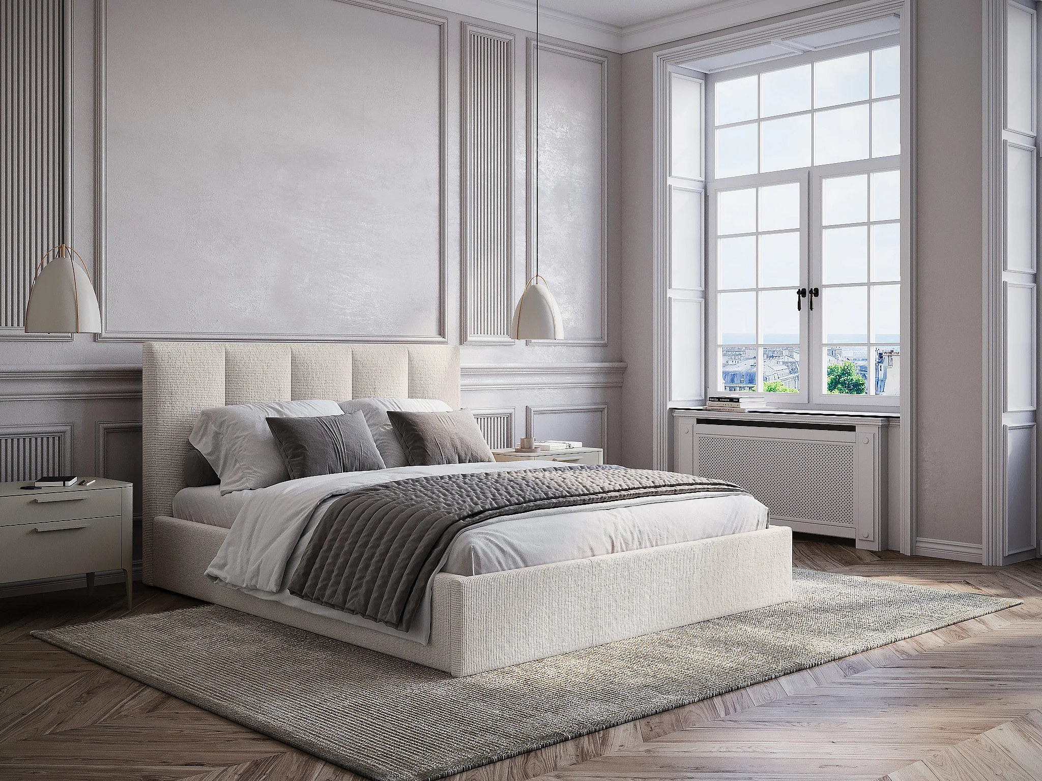 Lit coffre 180 x 200 cm avec tête de lit coutures verticales - Tissu - Beige - Avec matelas - KILACLO