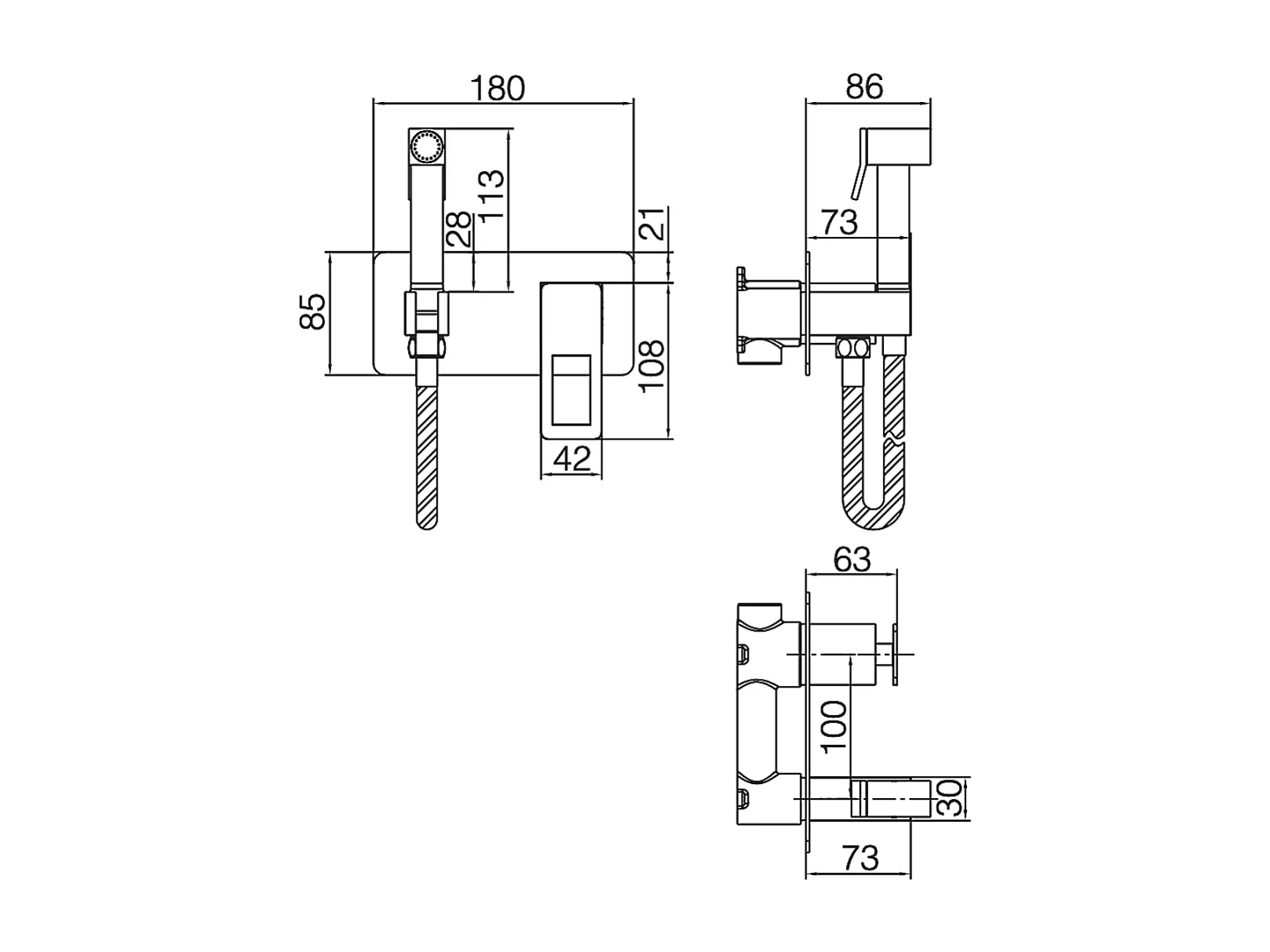 Kit Douchette hygiénique À ENCASTRER, WC ou Bidet Salle de Bain Chrome SUECIA BDC032-5