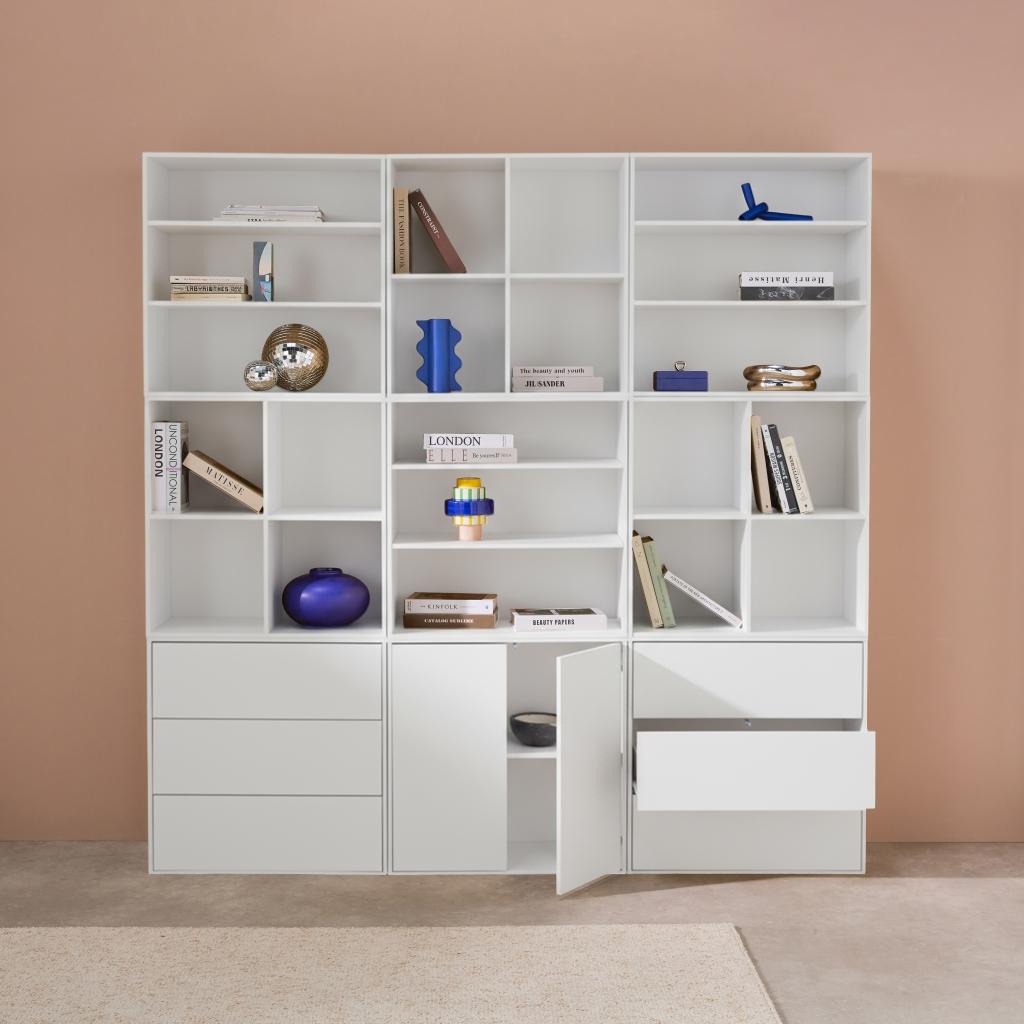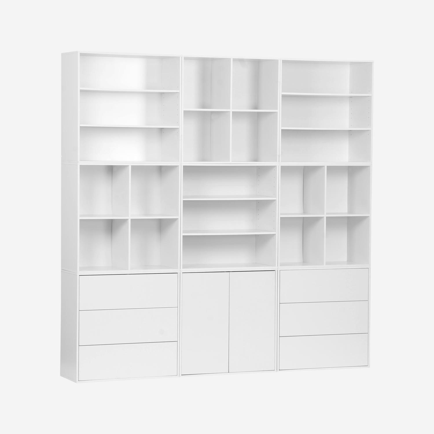 Kit étagère. bibliothèque décor bois blanc 9 éléments 100% modulable L 210 x P 35 x H 210cm - Kompo