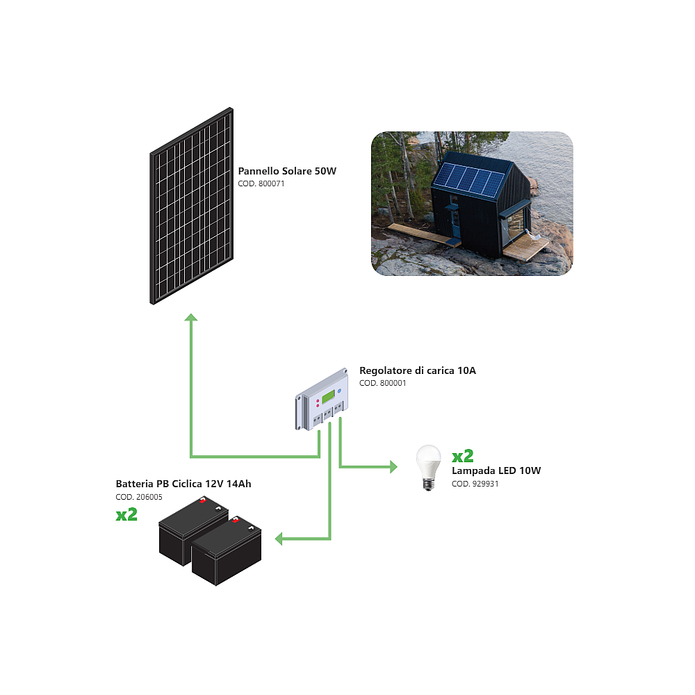Kit Îlot Photovoltaïque 50W Kit avec panneau solaire, contrôleur de charge, ampoules et accessoires d'installation